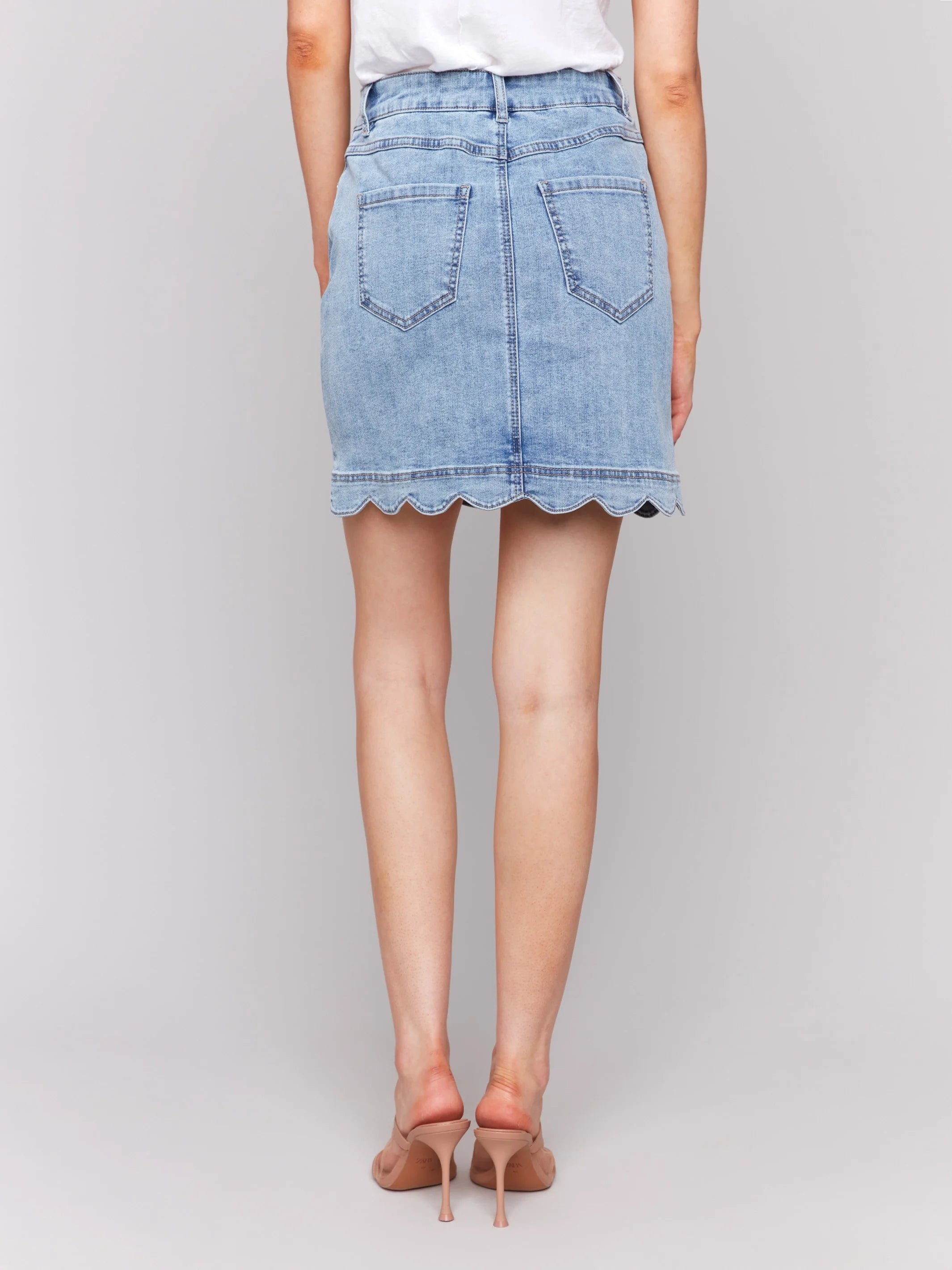 Charlie B C7079 Scalloped Hem Button-Front Denim Skort