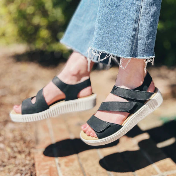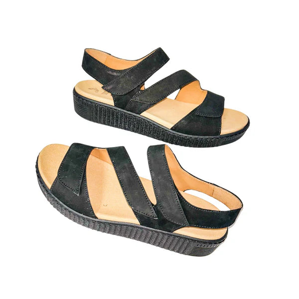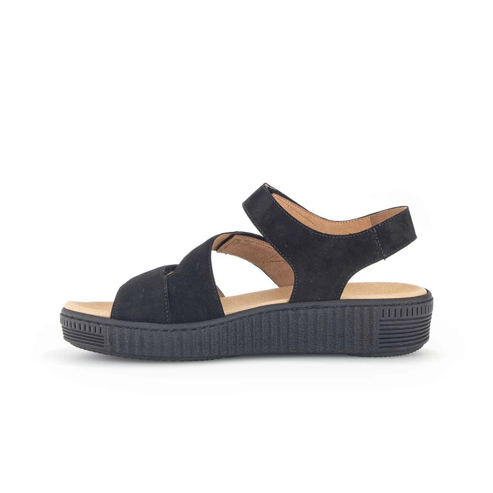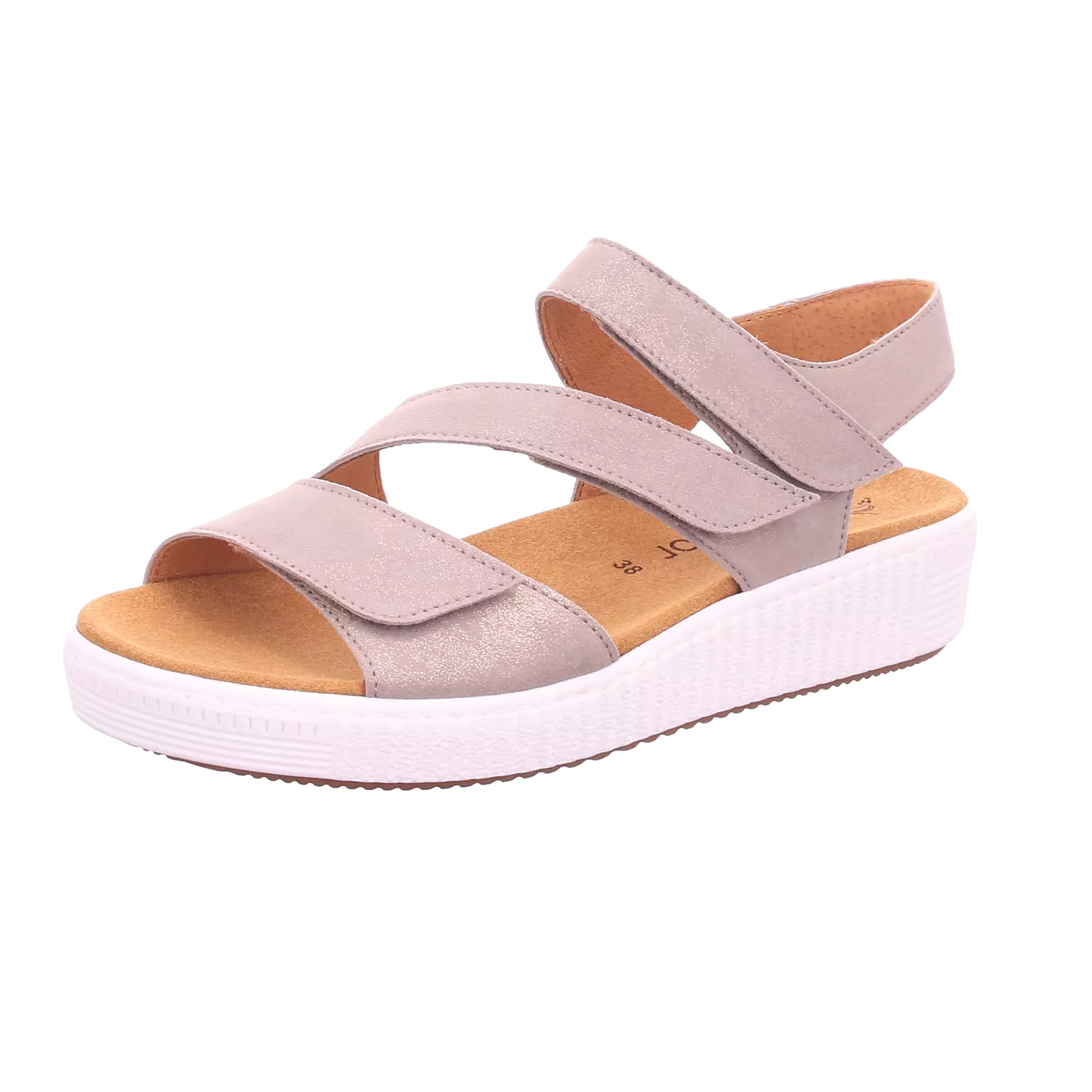 Step into style with Gabor 3.600 Aster Sandals. Experience top-notch quality and fit with suede upper, leather lining, and a wider fit at the ball of your foot. Stay secure with hook and loop closure and adjustable straps, while a removable footbed and a flat heel provide comfort. (Shoe)perb!