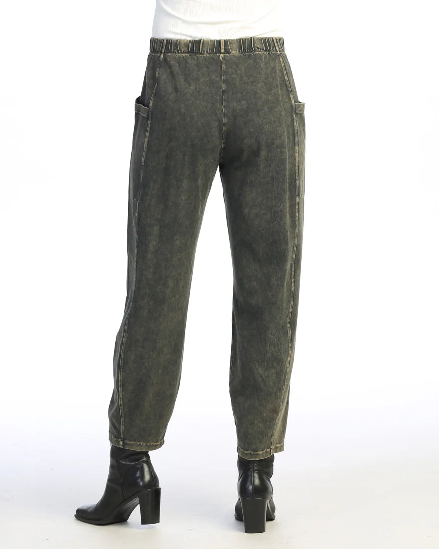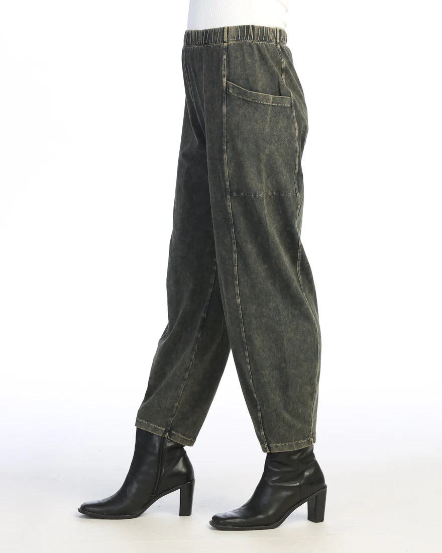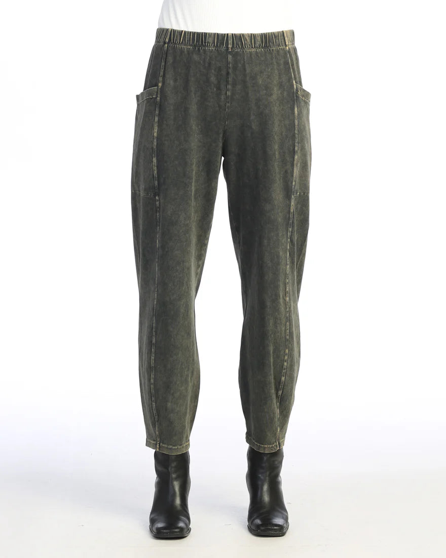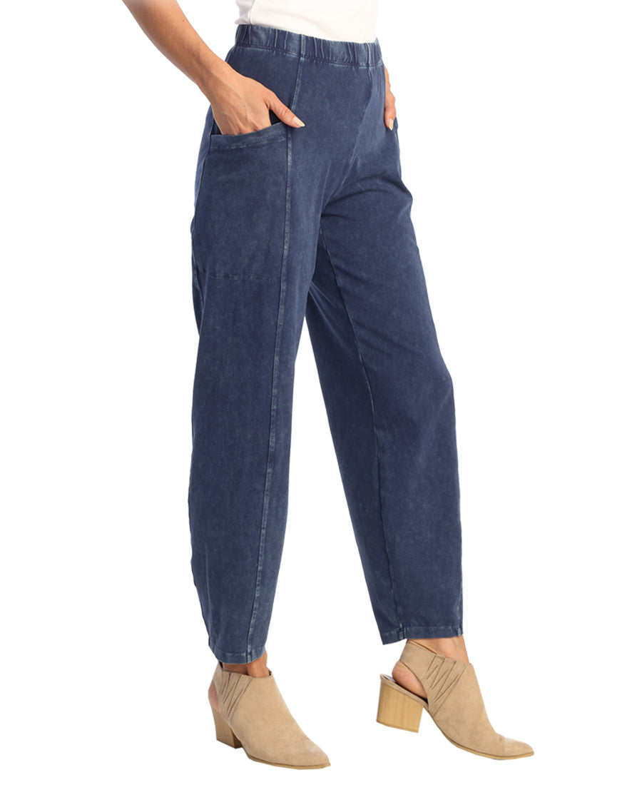Our Jess & Jane M100 Lantern Pant offers comfort and convenience with a mineral washed cotton spandex blend and elastic waistband. Side patch pockets make it practical and convenient. The 95% cotton and 5% spandex material ensures the pants are breathable and not see through.