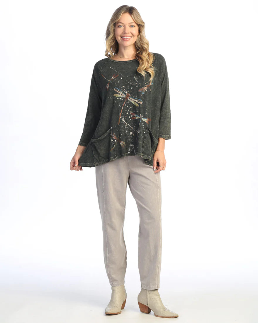 Jess & Jane M12-2043 Fairy Duet Mineral Wash Slub Patch Pockets Tunic Top