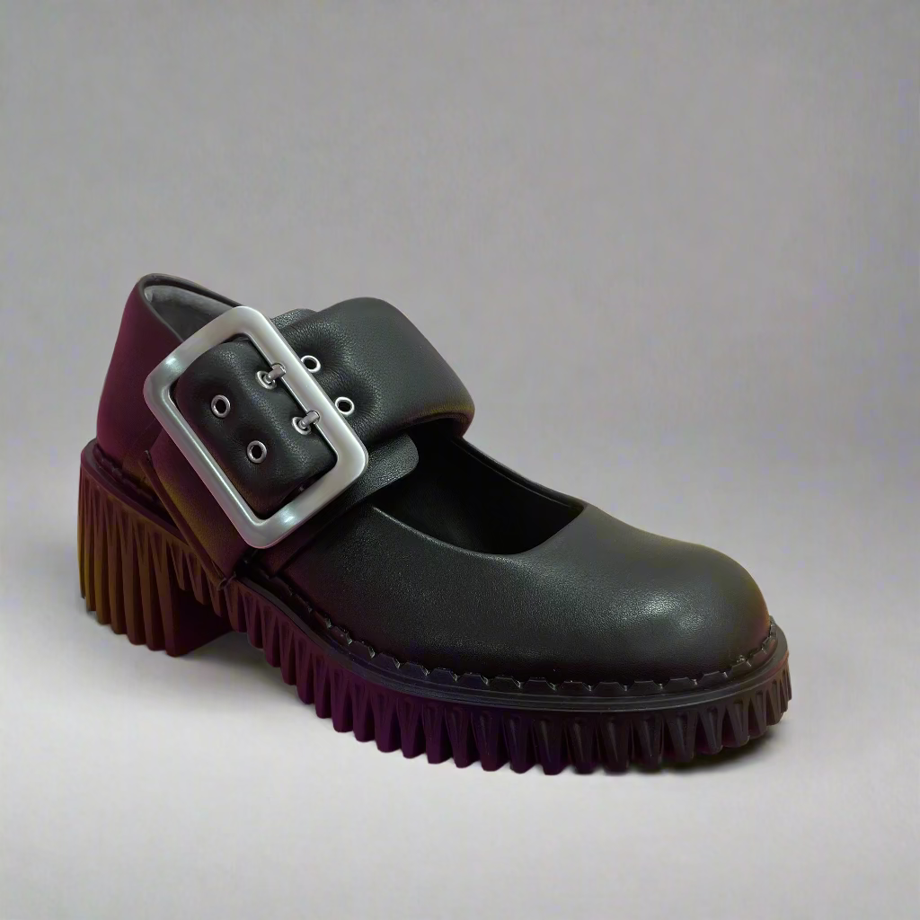 Step into playful charm with the 4CCCCEES Plita Jin Mary Jane, featuring a slightly higher cuff and an oversized, functional buckle that adds both style and practicality. Inspired by nature’s textures, its lightweight foamed rubber sole combines a bold 60mm heel with a 20mm platform for a comfy, modern lift. With a design echoing dandelions and tree bark, these shoes bring a fresh, fun twist to any outfit.