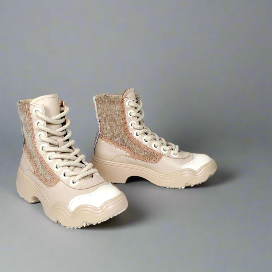 Step up your shoe game with the 4CCCCEES Sanho Curla Lace-Up Boots! These platform ankle boots combine playful style with everyday comfort, featuring easy slip-on laces and stretchy side panels. The durable rubber sole keeps you steady while you strut, making these boots your new go-to for a fun, effortless look.