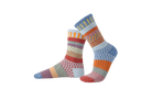 Colors in this sock: Orange, Sky Blue, Light Blue, Yellow-Green and Flame Red.