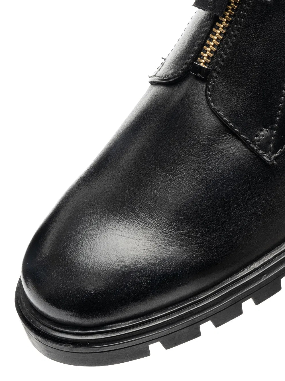 Step up your style with the ara 12-29520 Tourmaline Ankle Boots! Crafted from high-quality leather, these boots blend chic design with cozy comfort. Stay warm with a soft inner lining, while the removable footbed and High Soft feature pamper your feet all day long — perfect for adding your own insoles too. The side zip lets you slip them on in a snap, and the front decorative zip reveals a playful patterned tab for a fun twist. With a sturdy tread sole and comfy block heel, every step feels secure yet light as air. Plus, a handy loop makes slipping them on a breeze!