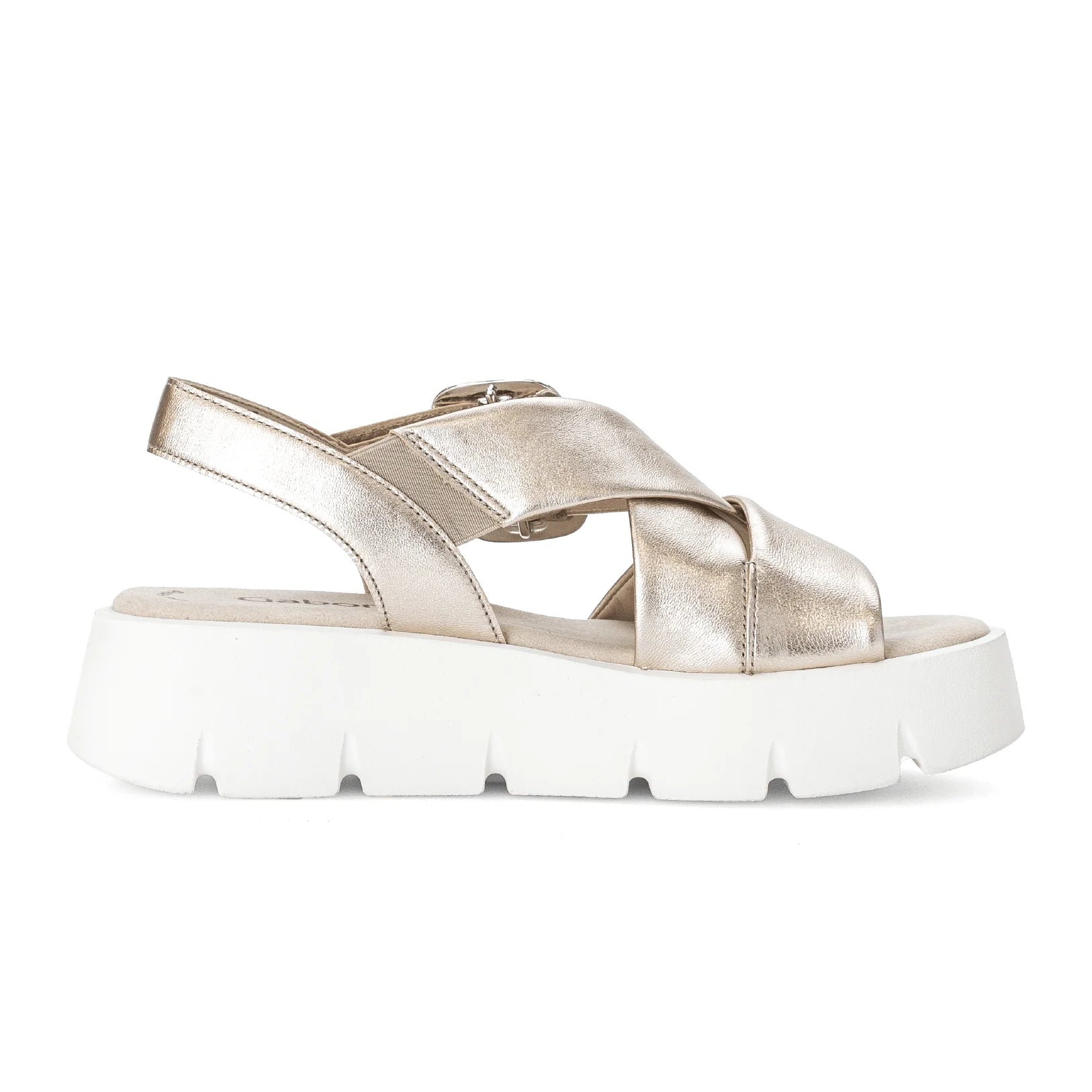 Get ready for summer with the Gabor 4.752 Gina Sandal! With straps around the ankle, over the instep, and over the toes, these sandals give a nod to the classic 90s sport sandal. But with cool updates like the white platform sole and added band across the toes, these sandals are a trendy and comfortable choice for all your walking and casual wear needs. Plus, with Gabor's focus on quality and comfort, you'll be sure to find your perfect fit!