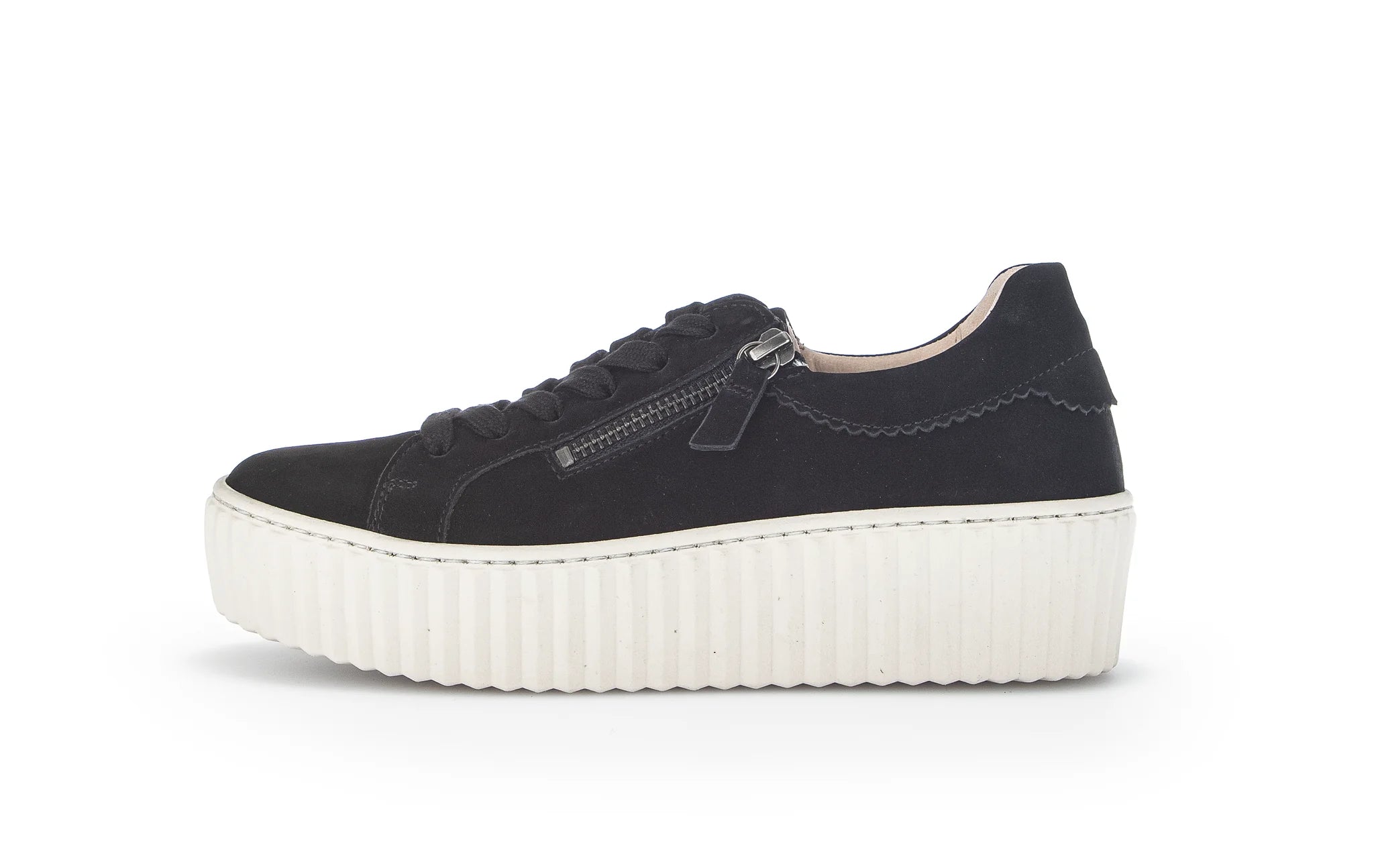 Take your look to the next level with this modern platform sneaker from Gabor. The elevated sole adds height and edge, while the convenient side zipper ensures easy on and off. Crafted from premium materials and designed with a sleek, sporty aesthetic, it’s the perfect mix of fashion and function.
