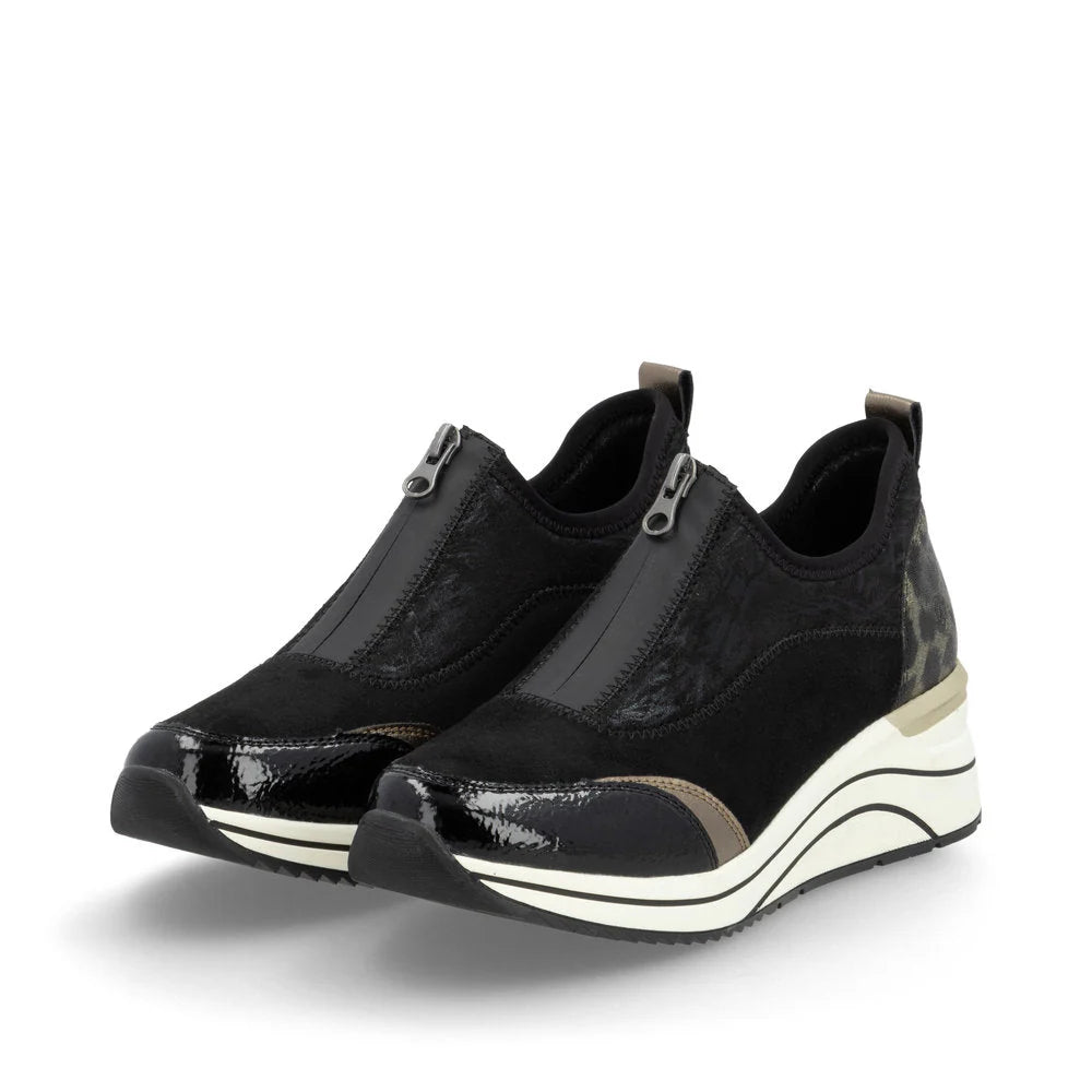 The Remonte D0T08-60 shoe is a versatile and stylish option suitable for many occasions. These sneakers are easy to slip on with a front zip fastening and an elasticated shaft edge. The Lite 'n Soft technology integrates a super lightweight sole with a padded, removable insole for enhanced comfort.