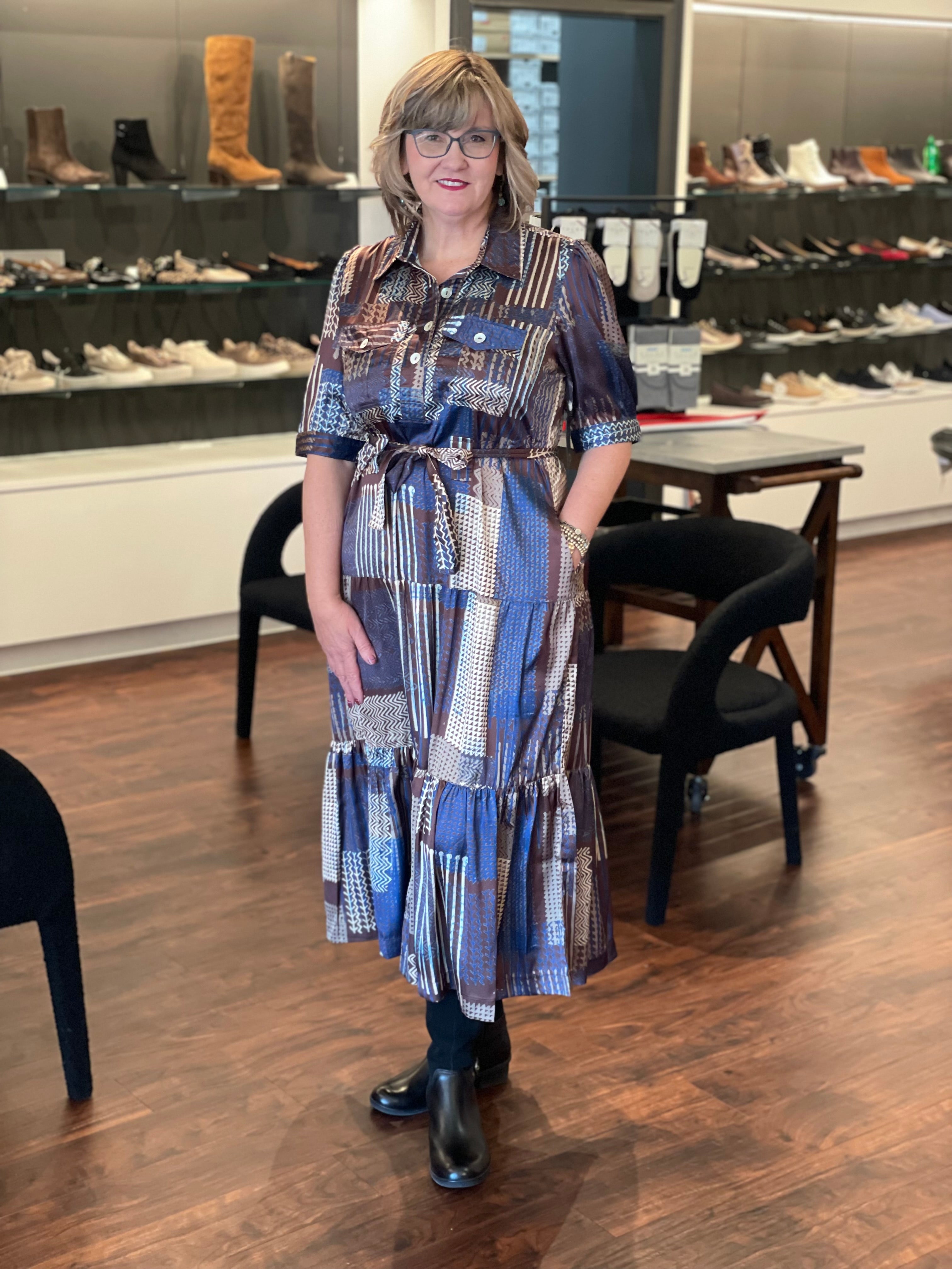 Twirl into autumn in this charming tiered dress! The APNY J56 features a flattering long silhouette with playful elbow sleeves and a rich brown multi color palette that's perfect for fall. The cascading tiers add movement and dimension, making it ideal for everything from casual outings to weekend gatherings. Comfortable, stylish, and oh-so-cute—this dress is your new seasonal favorite.