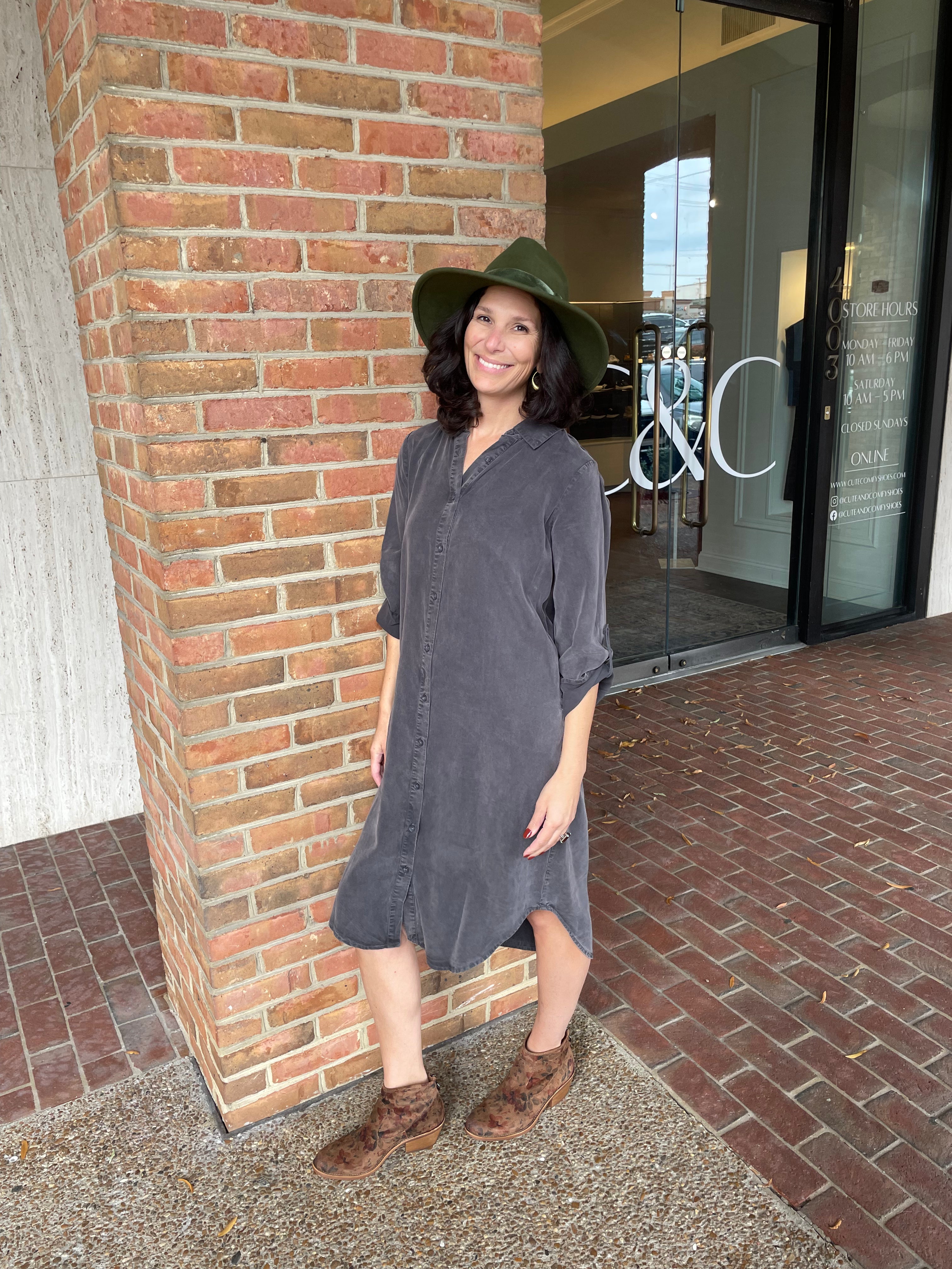 Mododoc 44F-94774S Roll-Up Sleeve Midi Shirt Dress