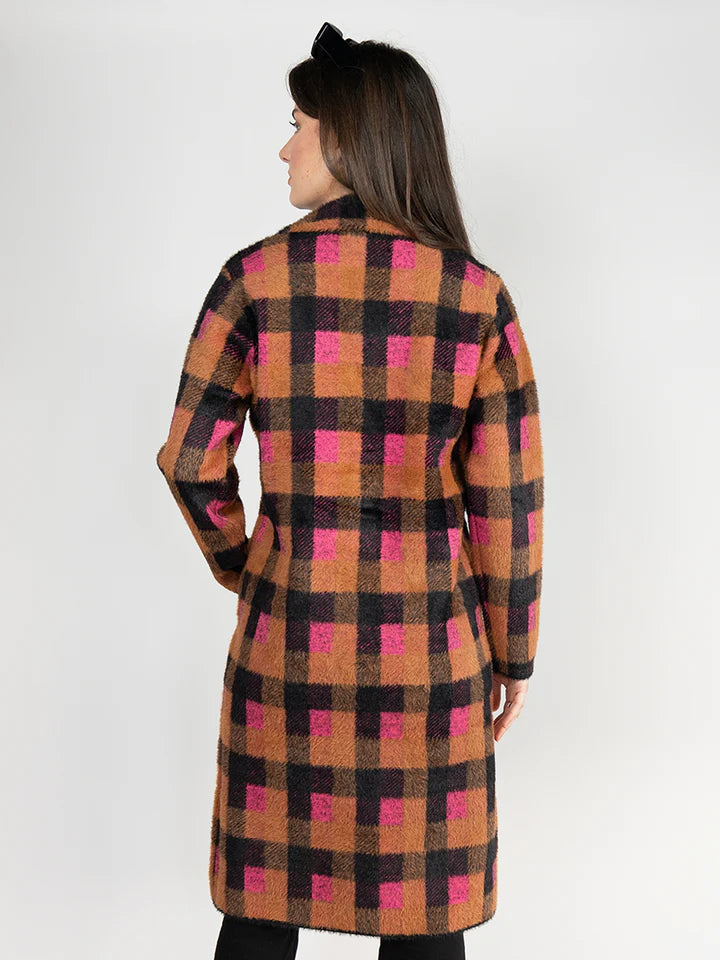 Wrap yourself in cozy plaid perfection with this stunning long coat featuring a bold brown and pink black plaid print. The generous length provides effortless coverage while the eye-catching pattern adds instant personality to any outfit. Whether you're layering over casual basics or dressing up your favorite jeans, this versatile jacket transitions seamlessly from season to season. The structured silhouette flatters your frame while keeping you warm and comfortable all day long. A wardrobe essential that proves practical style never goes out of fashion!