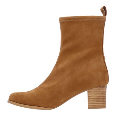 This stretch knit fabric round toe bootie has a memory foam insole, leather lining and synthetic outsole. This bootie has a shaft circumference of 10.5 inches and shaft height of 7 inches and comes on a 2 inch heel.