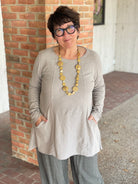 Stay cozy and stylish this fall with the Cute & Comfy 5017901 Pocket Top! Made from a breezy blend of 70% cotton and 30% linen, it’s perfect for layering or wearing solo when the weather is just right. With its playful pockets and easygoing vibe, this top adds a fun touch to any outfit while keeping comfort front and center.