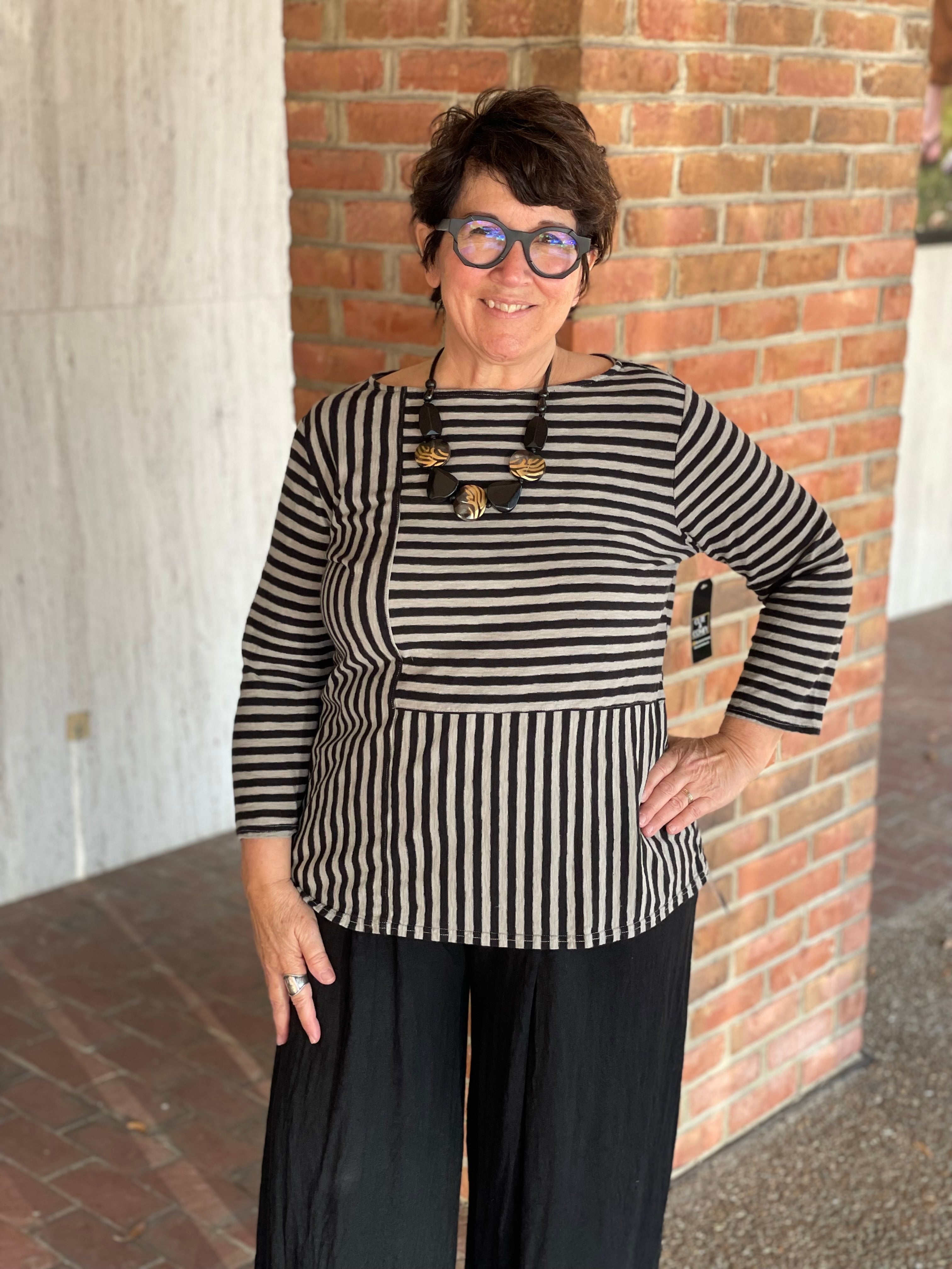 Stay stylish and cozy this fall with the Cute & Comfy Patch Aline Boatneck Top. Made from a breezy blend of 70% cotton and 30% linen, its playful multi-directional stripes add a fun twist to your wardrobe. Perfect for travel and everyday wear, this top keeps you comfortable while turning heads wherever you go. Embrace the season with effortless charm!