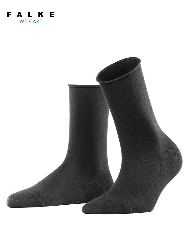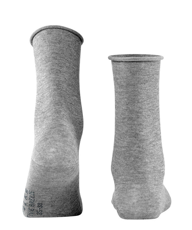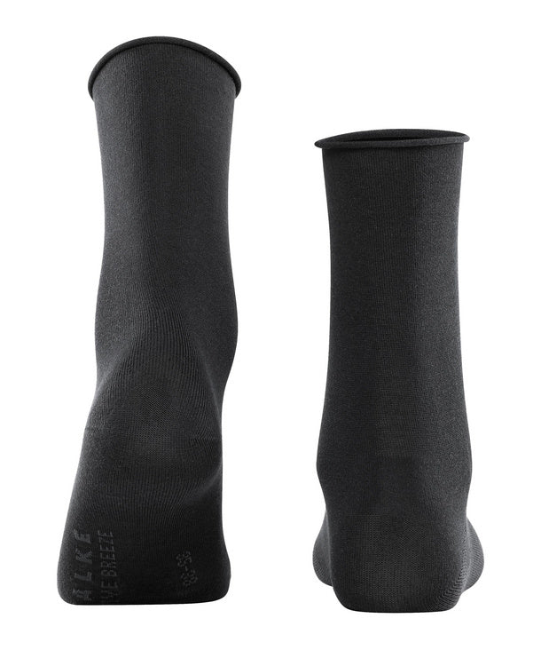 These socks guarantee a pleasantly fresh feeling on the skin thanks to the use of soft, skin-flattering TENCEL™ Lyocell. The FALKE Active Breeze not only offers great wearing comfort, but is also made of a sustainable FALKE - WE CARE - yarn composition. TENCEL™ Lyocell is a biodegradable fibre obtained from sustainably grown, FSC-certified eucalyptus wood. The cultivation of eucalyptus trees does not depend on artificial irrigation and fertilisation and is much more resource-efficient than the cultivation of cotton, for example. The fibre is produced in a closed cycle and is therefore particularly environmentally friendly. Resulting in a material that is particularly skin-flattering and provides a high level of breathability and fast moisture transport. The exceptionally smooth and slightly silky look of the Tencel ™ Lyocell and the pleasant rolled cuff lend these socks a feminine touch.