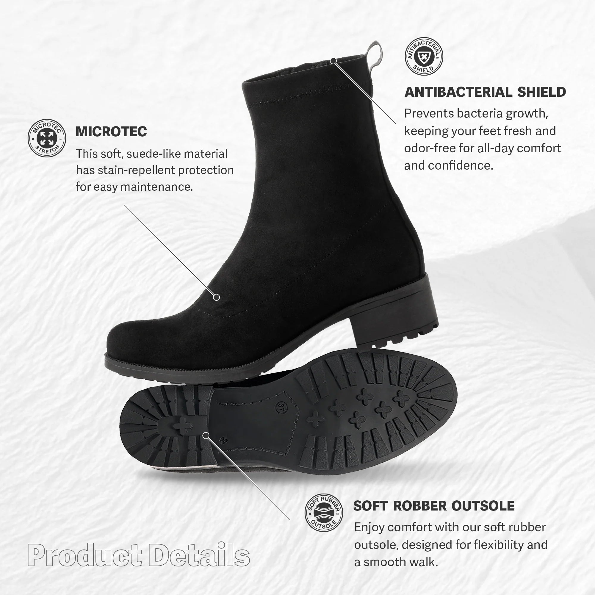 Effortless On & Off: The inner side zipper lets you slip them on with ease — no tugging or balancing act needed.