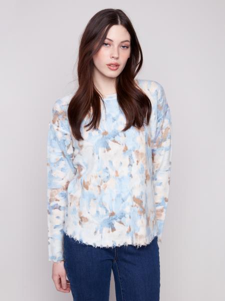 FINAL SALE Charlie B C2735R Reversible Printed Plush Sweater with Frayed Edge