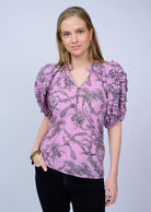 Step into playful elegance with the Ivy Jane 621559 Toile Ruffle Sleeve Top. Its charming lilac shade and fun ruffle sleeves brighten your look, while the elegant toile print adds a touch of sophistication. Lightweight and comfortable, this top is perfect for travel, keeping you stylish on the go without sacrificing comfort.