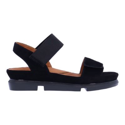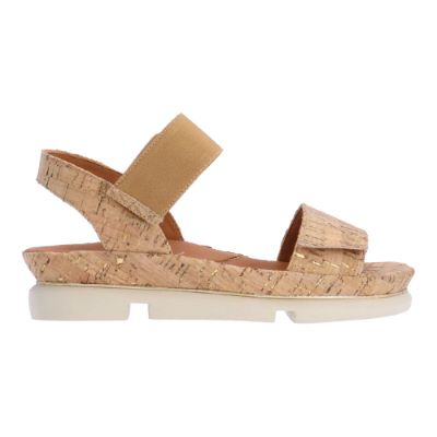 This leather/elastic sandal has a round toe, memory foam insole, leather lining and synthetic outsole. This style also features a hook and loop closure on a 1.75 inch heel.