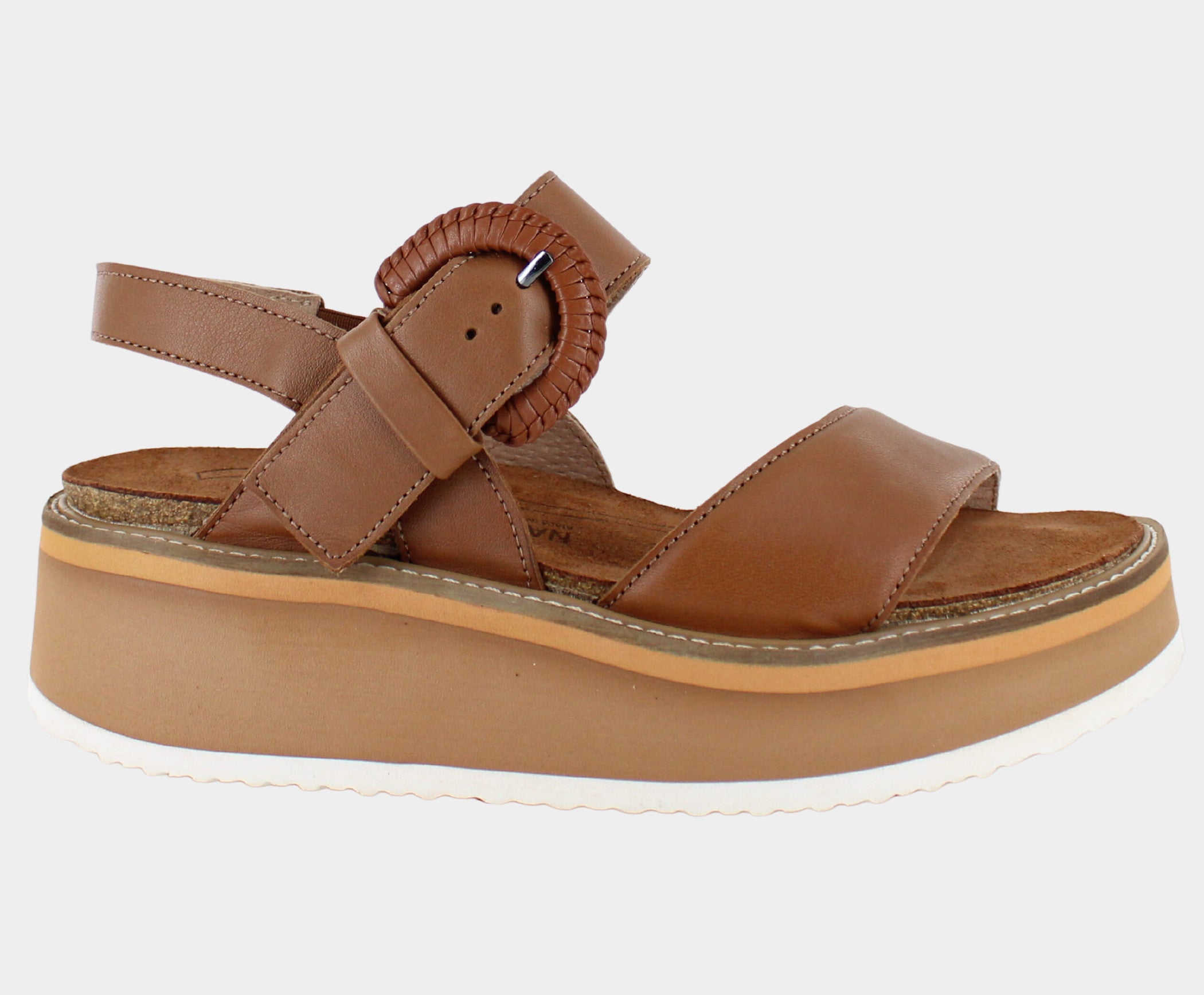 Meet Crepe – where style and comfort intertwine seamlessly. This platform sandal is your go-to for a perfect fusion of fashion and coziness. What makes Crepe extra special? It's all about Naot's anatomic cork & latex footbed, delicately wrapped in pampering suede. This footbed isn't just a support system; it's a gradual, personalized molding experience, ensuring a snug fit that's uniquely yours. The Crepe shines with a 2.2" EVA sole. It's not just about the elevation; it's a statement that adds an extra layer of style to your every step.