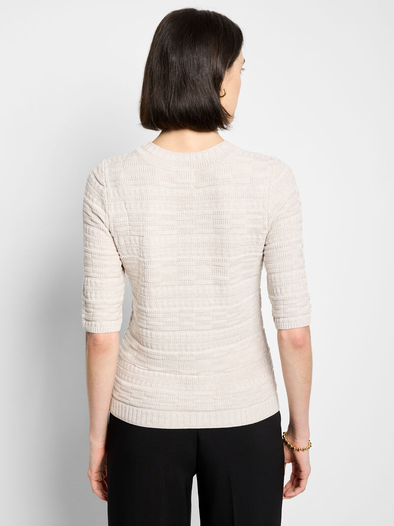 Meet your new essential: the Textured Sweater Tee. Designed for a polished, layered look, this chic knit tee is made from our fan-favorite Vital yarn and crafted in a ribby tuck stitch for rich texture and refined structure. With a closer fit that sits smoothly under blazers and jackets, it's the perfect work knit -- elevated, versatile, and ready to take you from morning meetings to dinner plans. Sleek enough to wear solo, yet built to shine as a layering piece, this is the sweater tee you'll reach for on repeat.