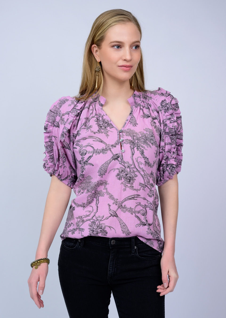 FINAL SALE Ivy Jane 621559 Toile Ruffle Sleeve Top