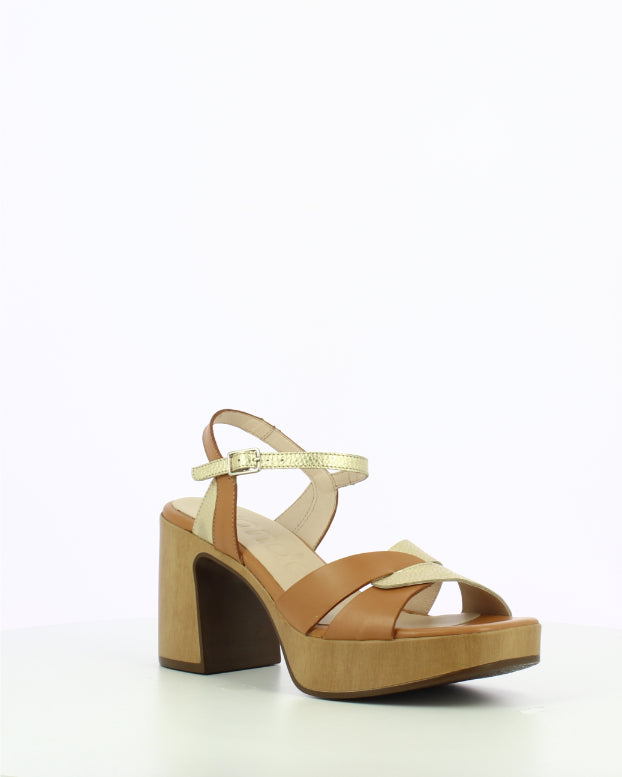 SORAYA platform sandals, crafted in a combination of white and silver leather. This versatile and casual design stands out with its intertwined straps in two tones decorating the vamp. The side buckle ankle strap ensures comfort and stability. The wide block heel with a wood-effect finish adds style and security, while the MemoryGel insole provides an ergonomic experience with every step. Wonders supports sustainable manufacturing certified by LEATHERWORKINGGROUP.