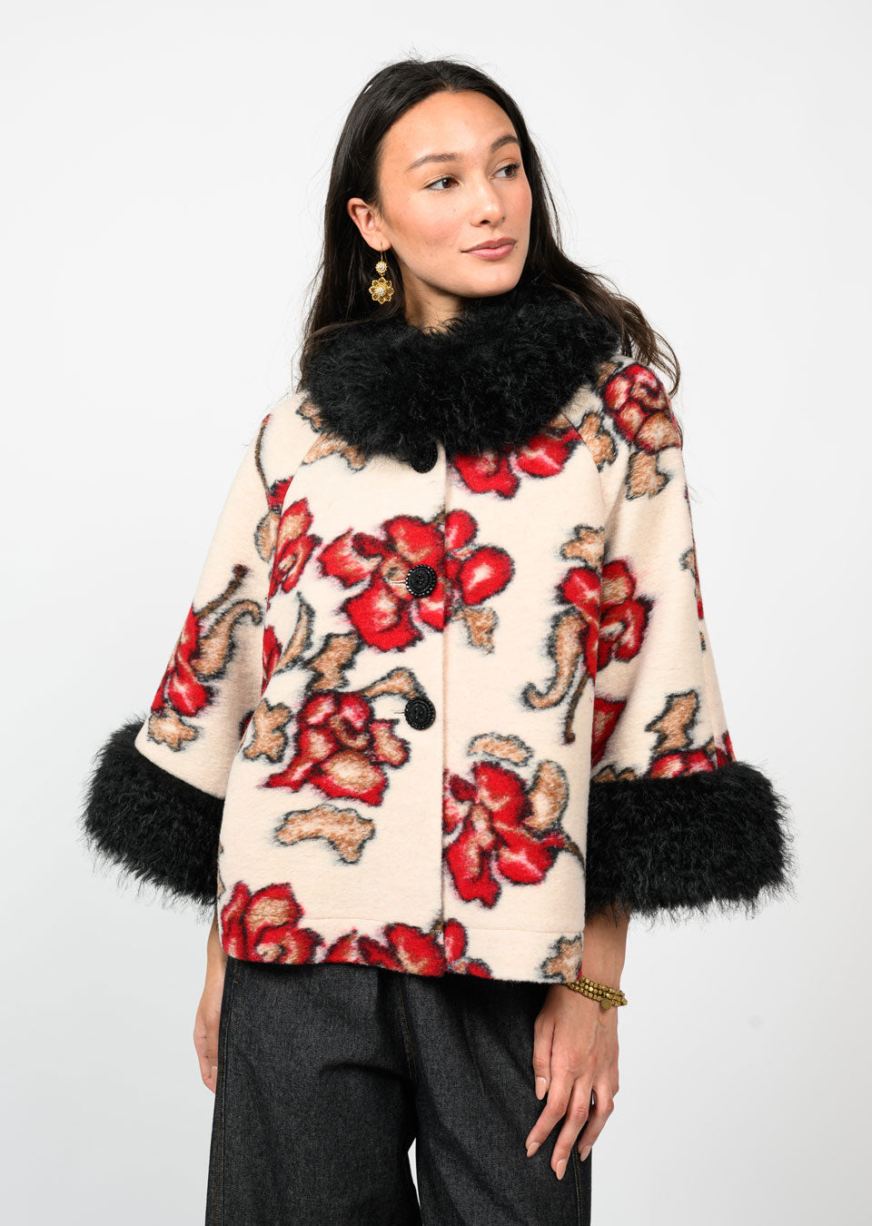 Ivy Jane 130235 3/4 Sleeve Coat w/ Fur Accents