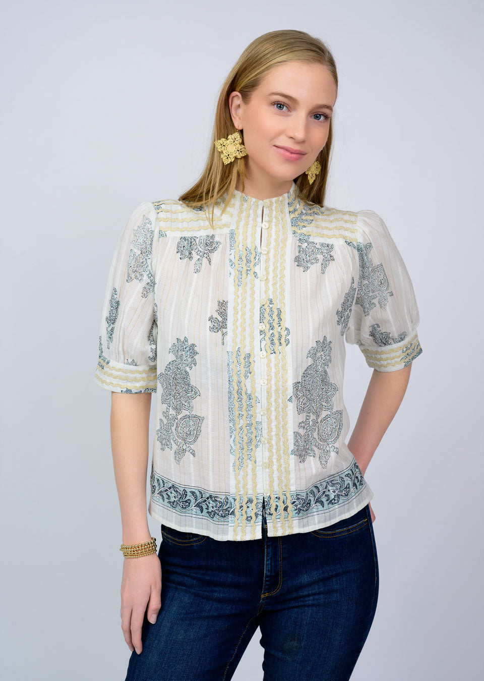 Ivy Jane 621581 Metallic Trim Paisley Top