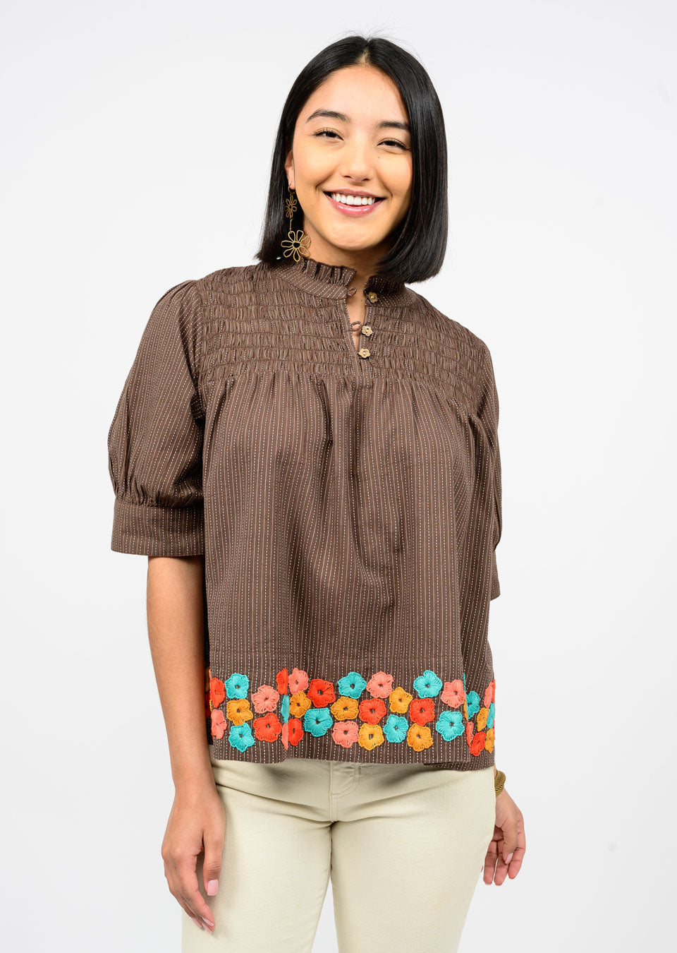 Bloom into style with this charming Ivy Jane top, where delicate florals dance along the hem for an effortlessly whimsical touch. Perfect for layering or wearing solo, this piece brings garden-inspired elegance to your everyday wardrobe. The playful floral detailing adds personality without overwhelming your look, making it ideal for anyone who loves nature-inspired fashion with a lighthearted twist. Comfortable enough for all-day wear, this top celebrates the beauty of flowers in the most delightful way.