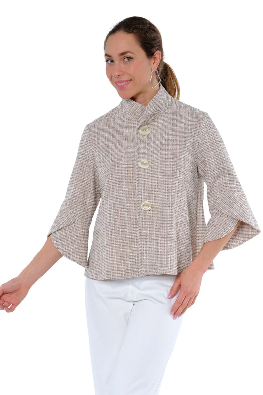 Meet your new favorite layer! The Lior Vaya-27 3-Button Jacket brings effortless style with its charming tulip sleeves and timeless three-button silhouette. Crafted in a warm cornsilk tweed, this jacket pairs beautifully with everything from casual jeans to polished dresses. The soft, textured fabric feels as good as it looks, making it the perfect go-to piece for adding personality to any outfit. Cozy, chic, and undeniably cute—this is the jacket you'll reach for again and again.