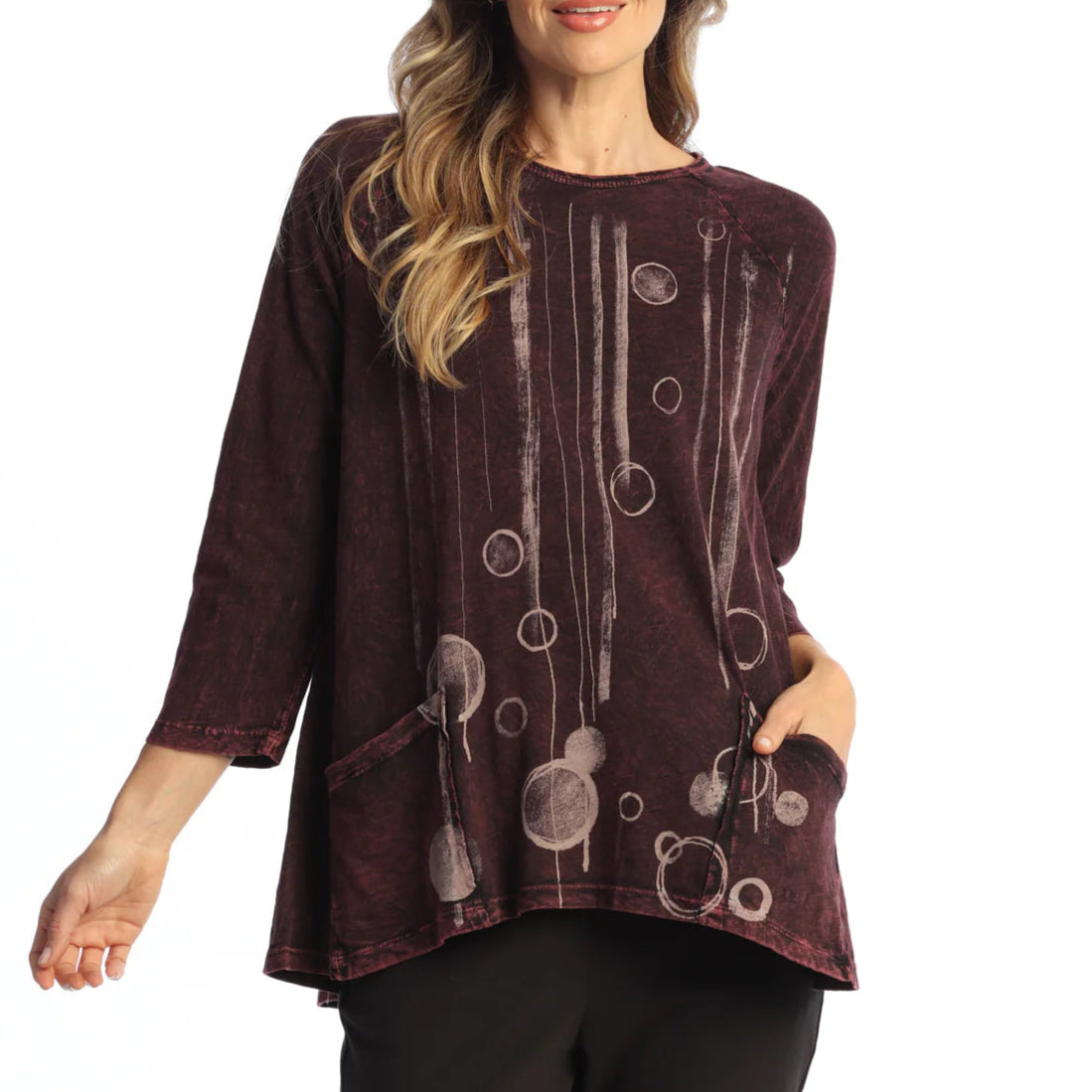 Jess & Jane M12-2150 Oceana Mineral Washed 100% Cotton Slub Patch Pockets Tunic Top