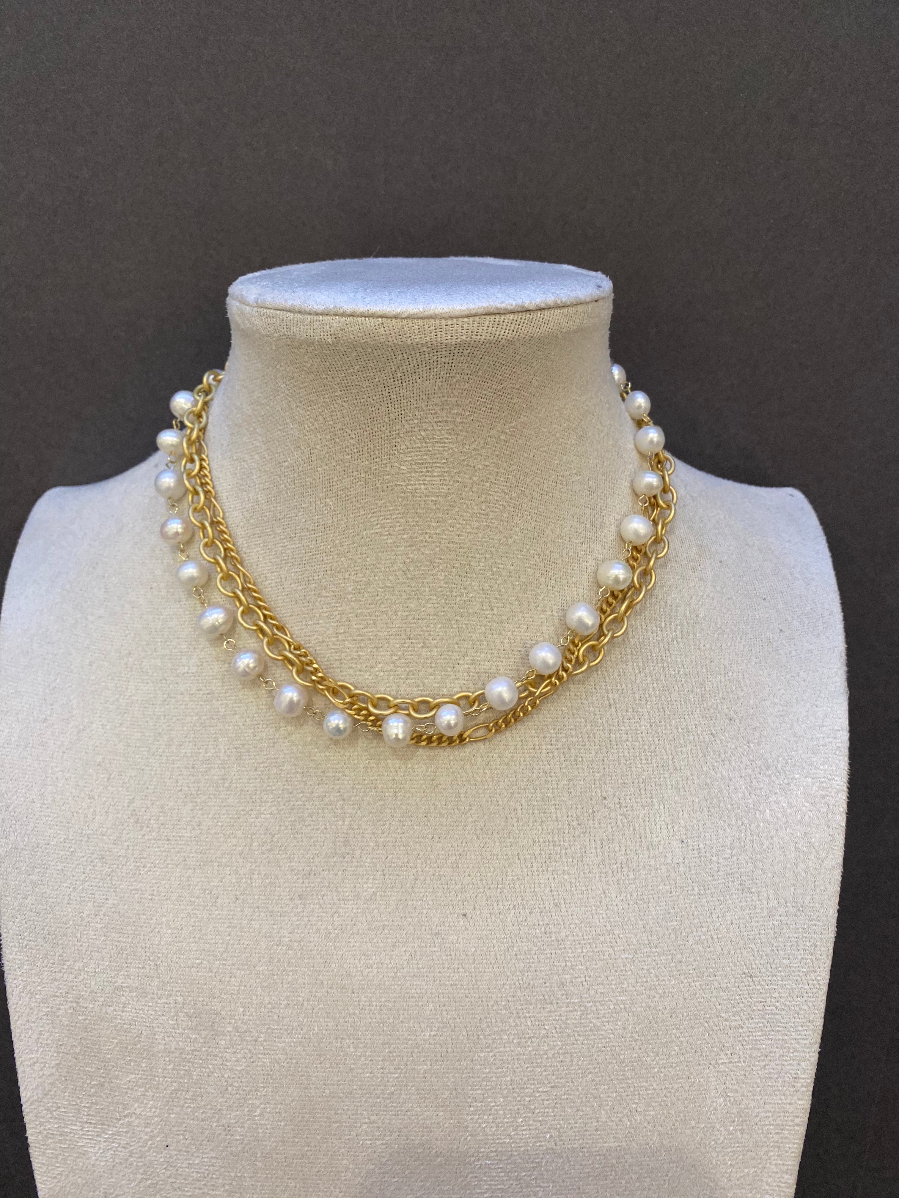 LJ Sonder LJ1636 Royal Necklace of Multi Chains and Pearl Rosary
