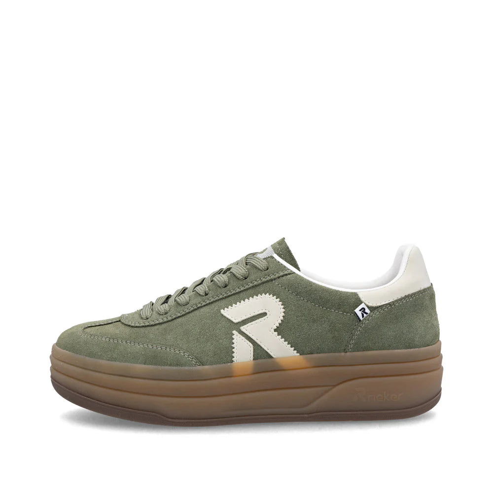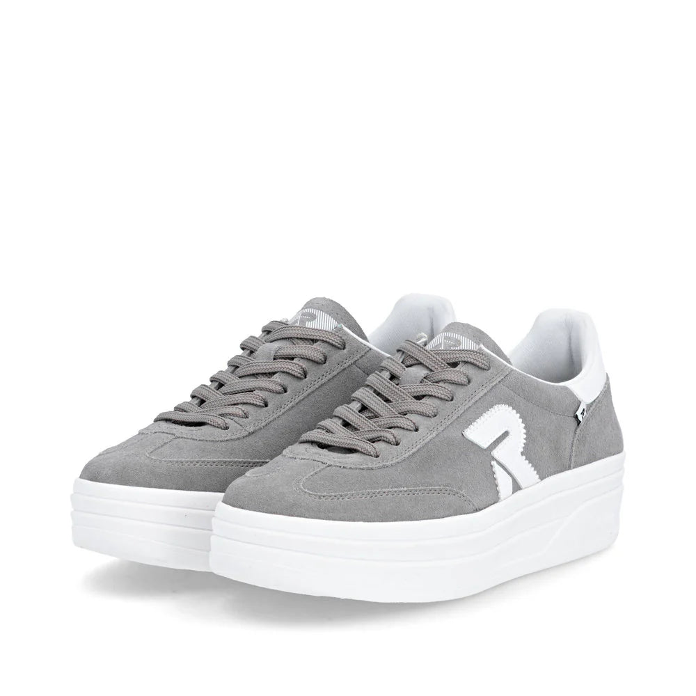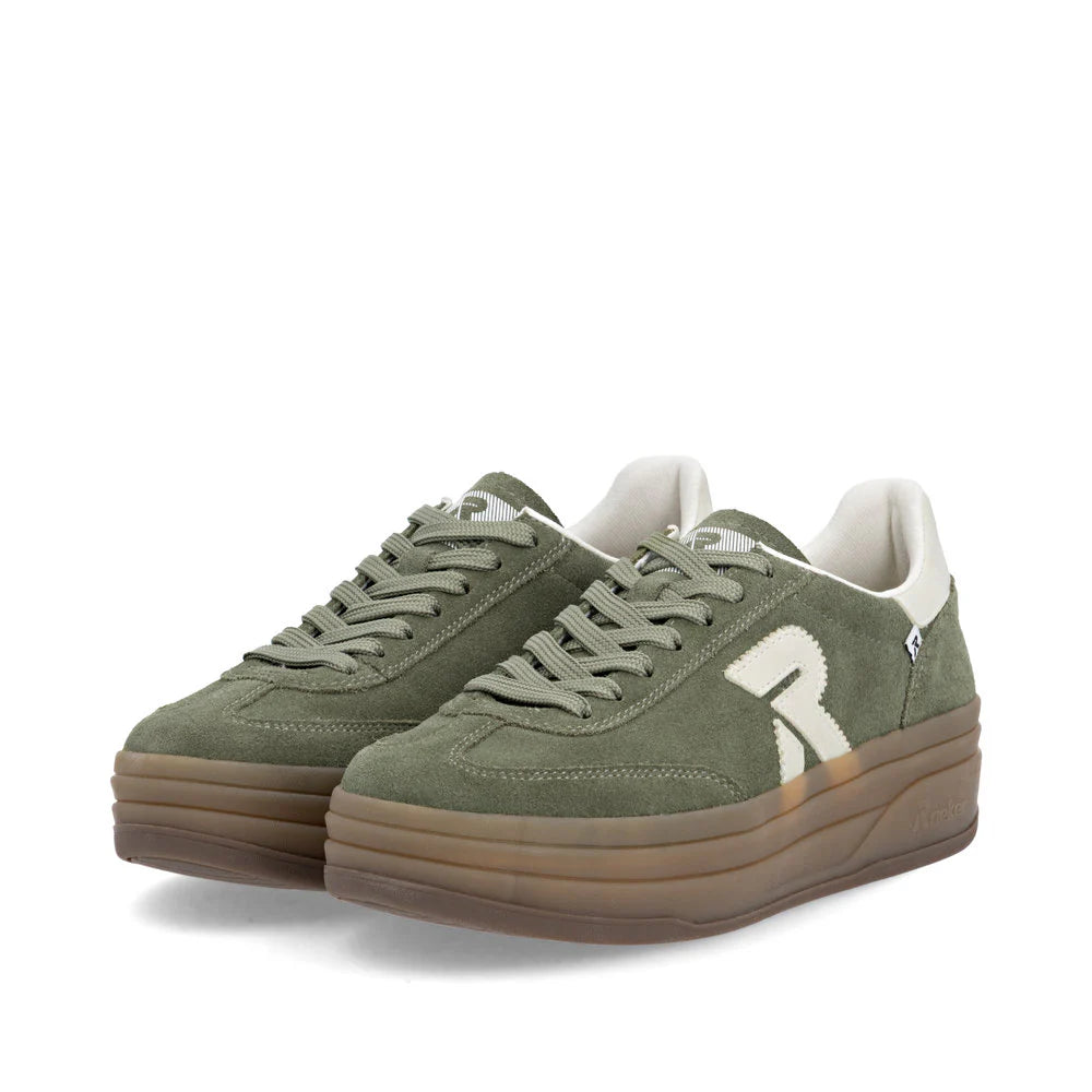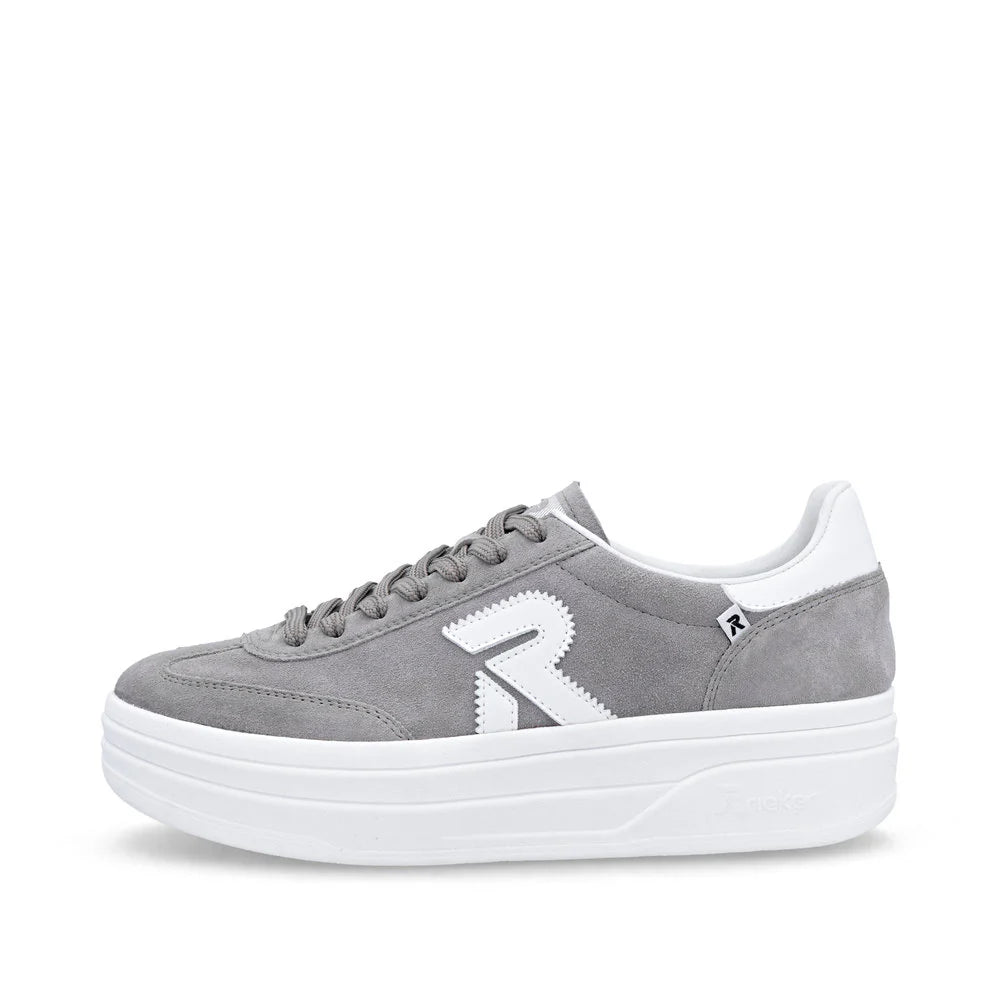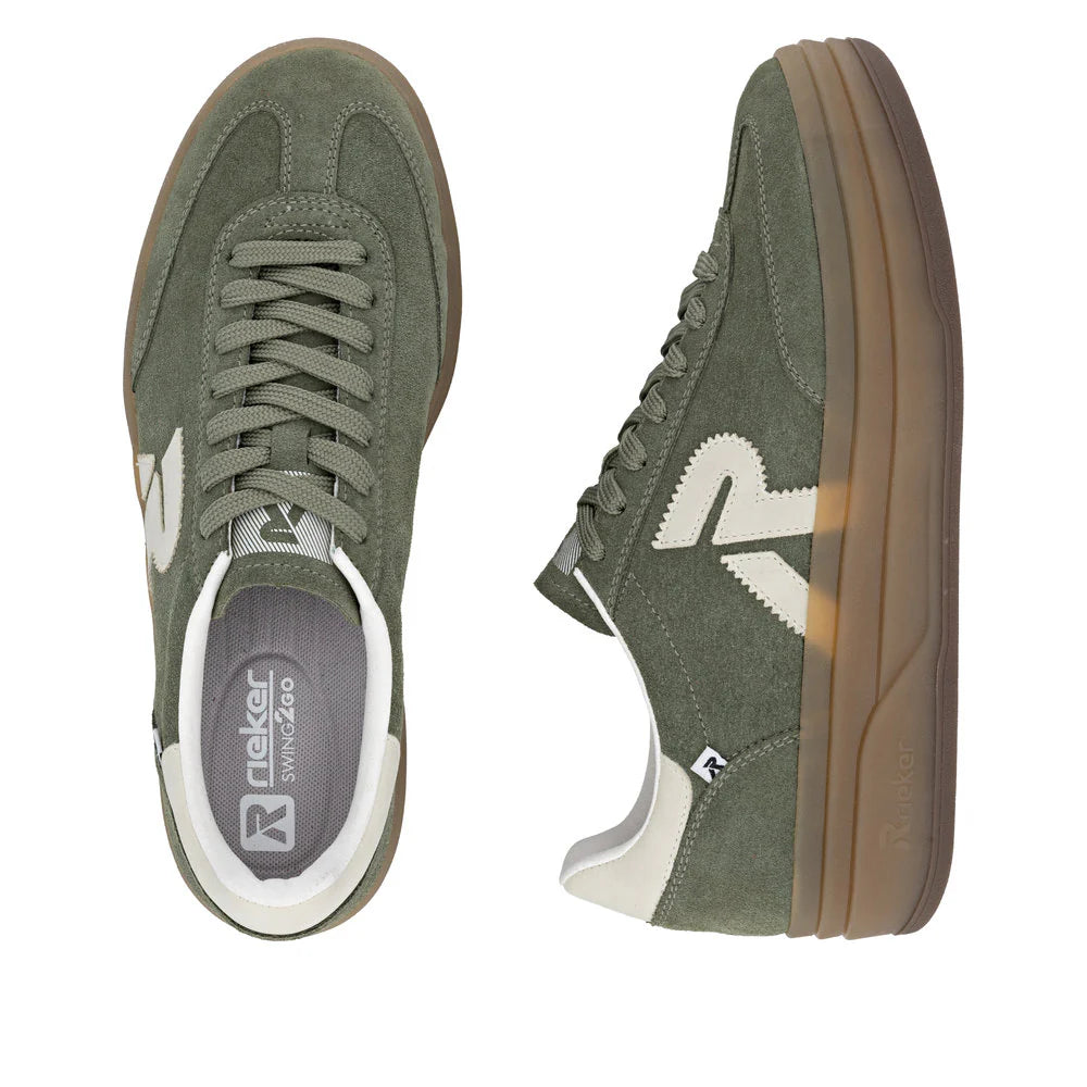 These Rieker low-top sneakers are made of high-quality smooth leather. Swing2GO: the insole with arch support gives your feet that extra energy kick. TR sole with ultra-light, super soft EVA inlet. Light micro velour and synthetic leather lining. The comfort width means the shoe fits perfectly.