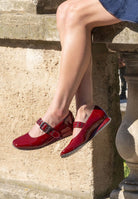 This leather pump has a square toe, memory foam insole, leather lining and synthetic outsole. This style also features a hook and loop closure on a 1.25 inch heel.
