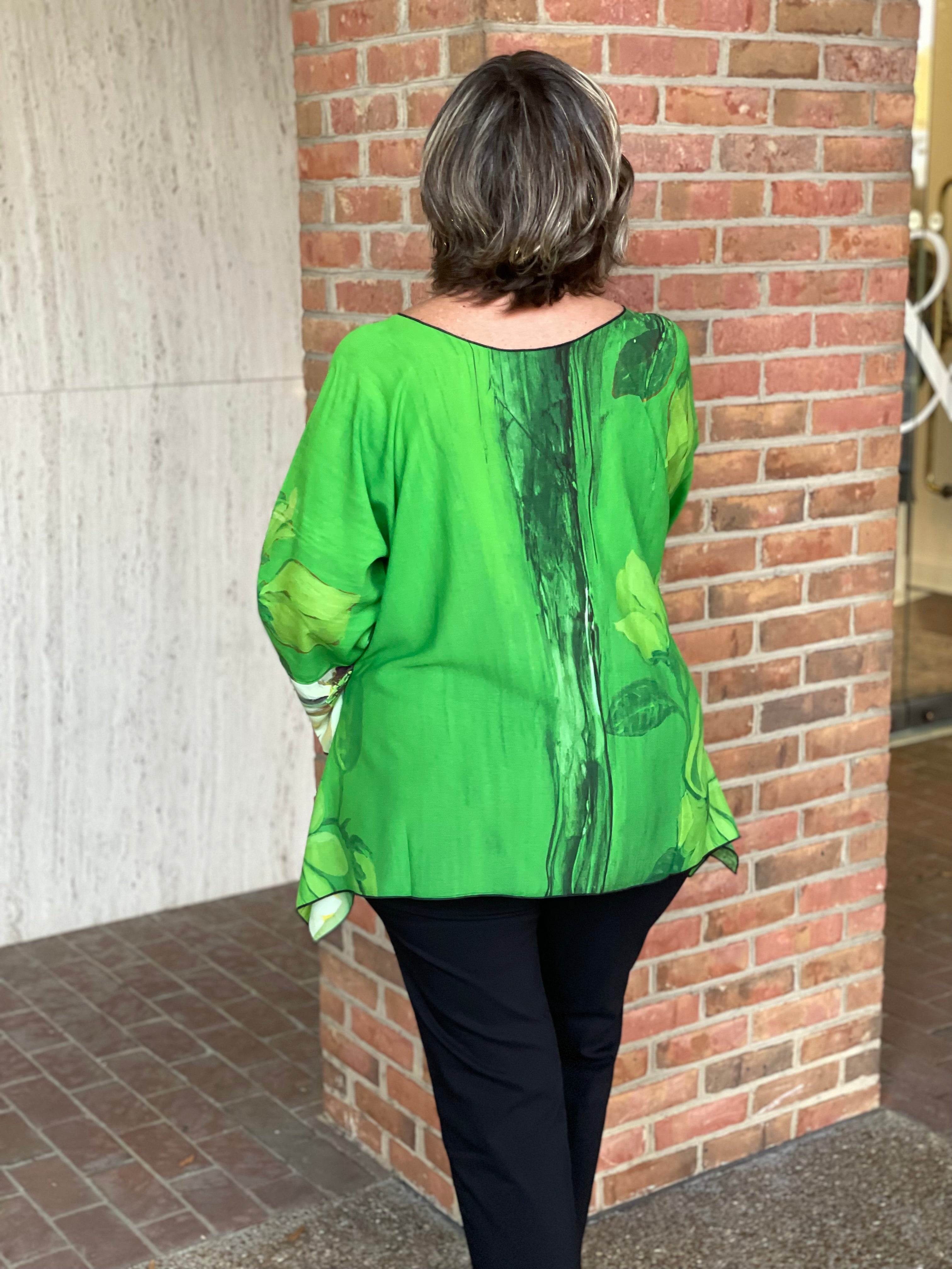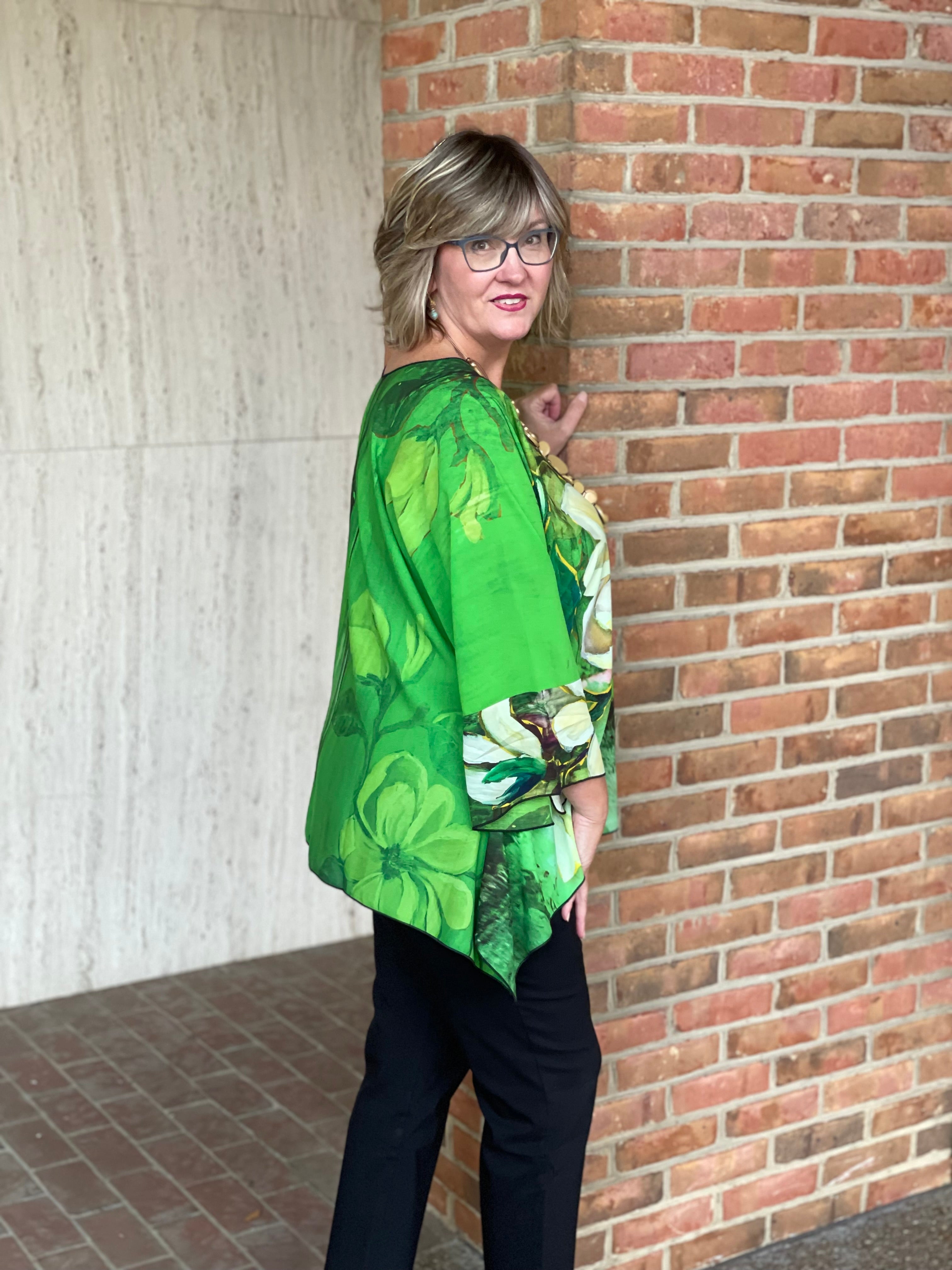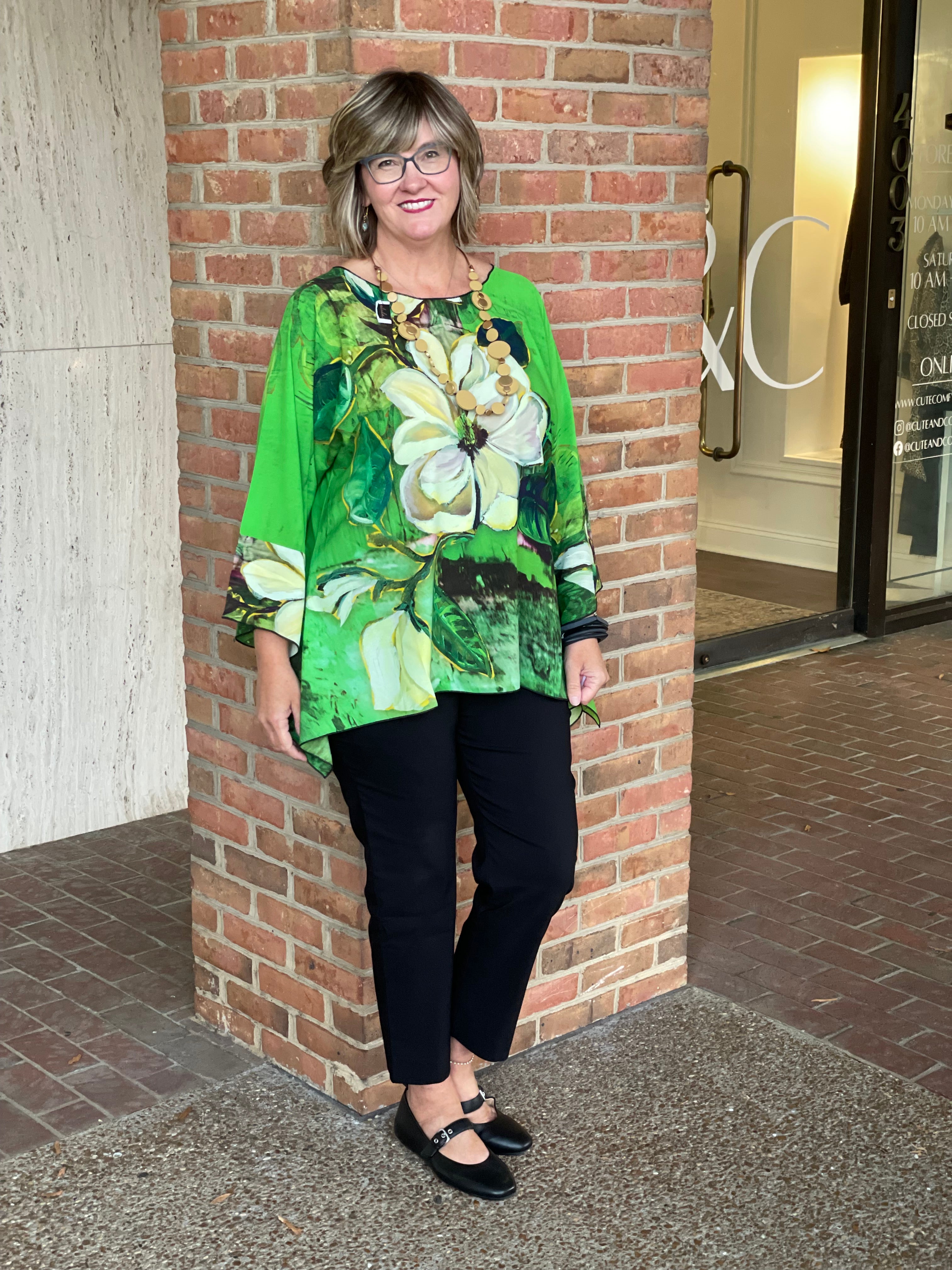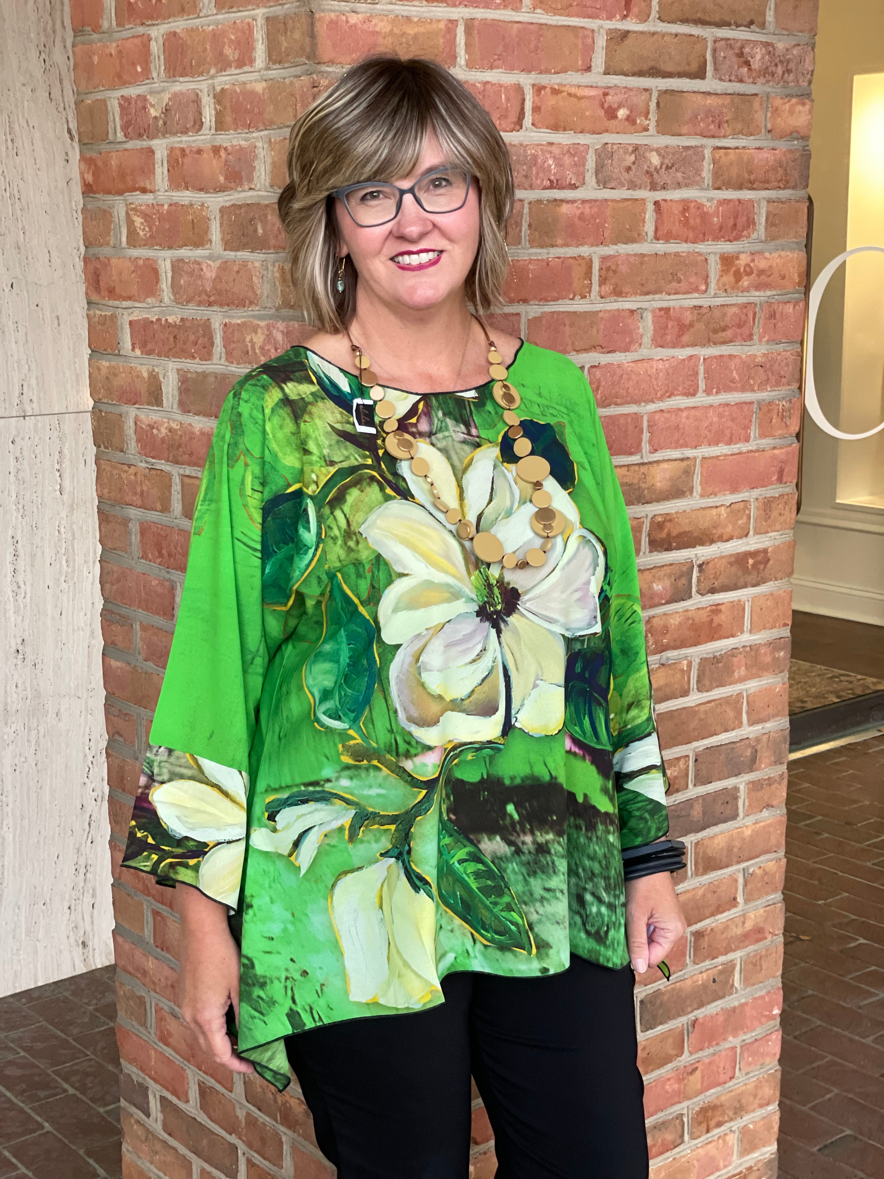 This playful green floral tunic is the perfect one-size wonder, flattering sizes 4 to 18/20 with effortless, flowy elegance. Its breezy fit and charming pattern make it an easy go-to for any day you want to feel beautiful without fuss.