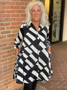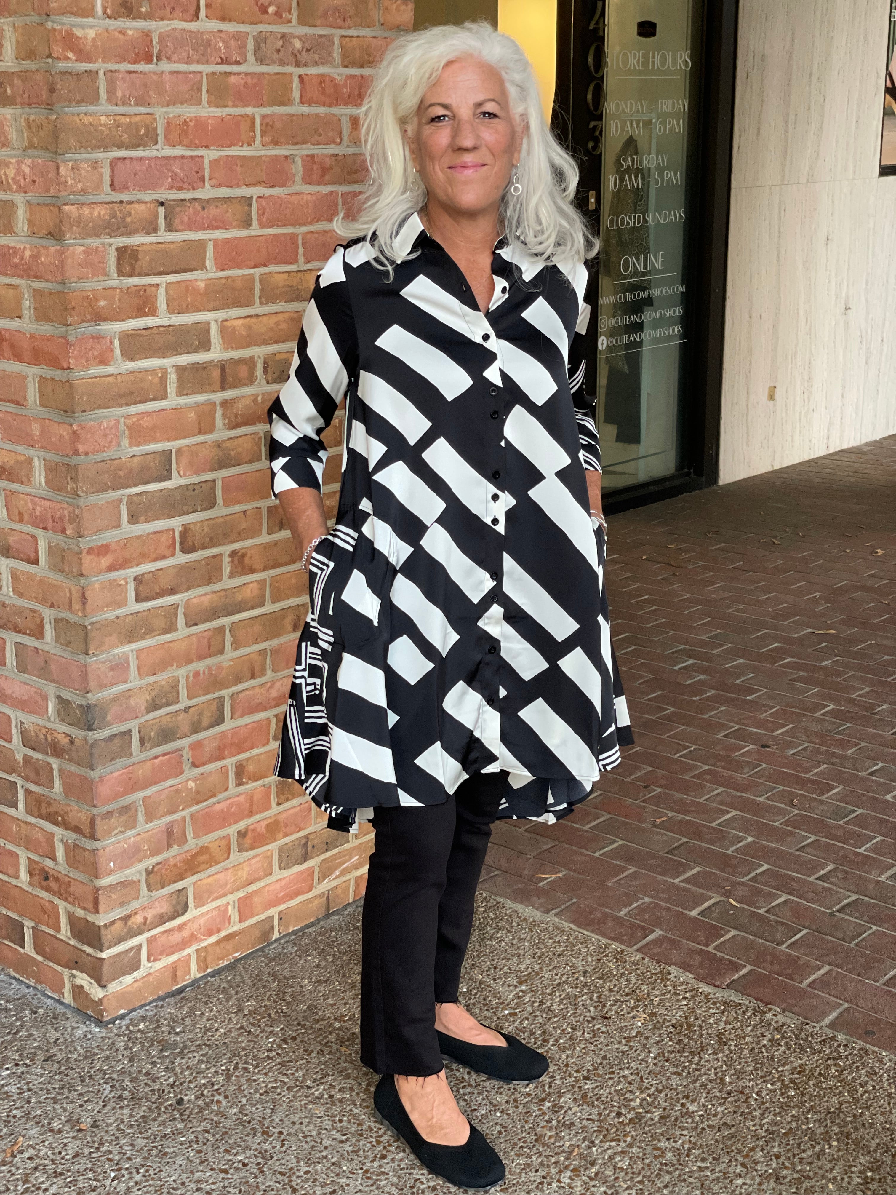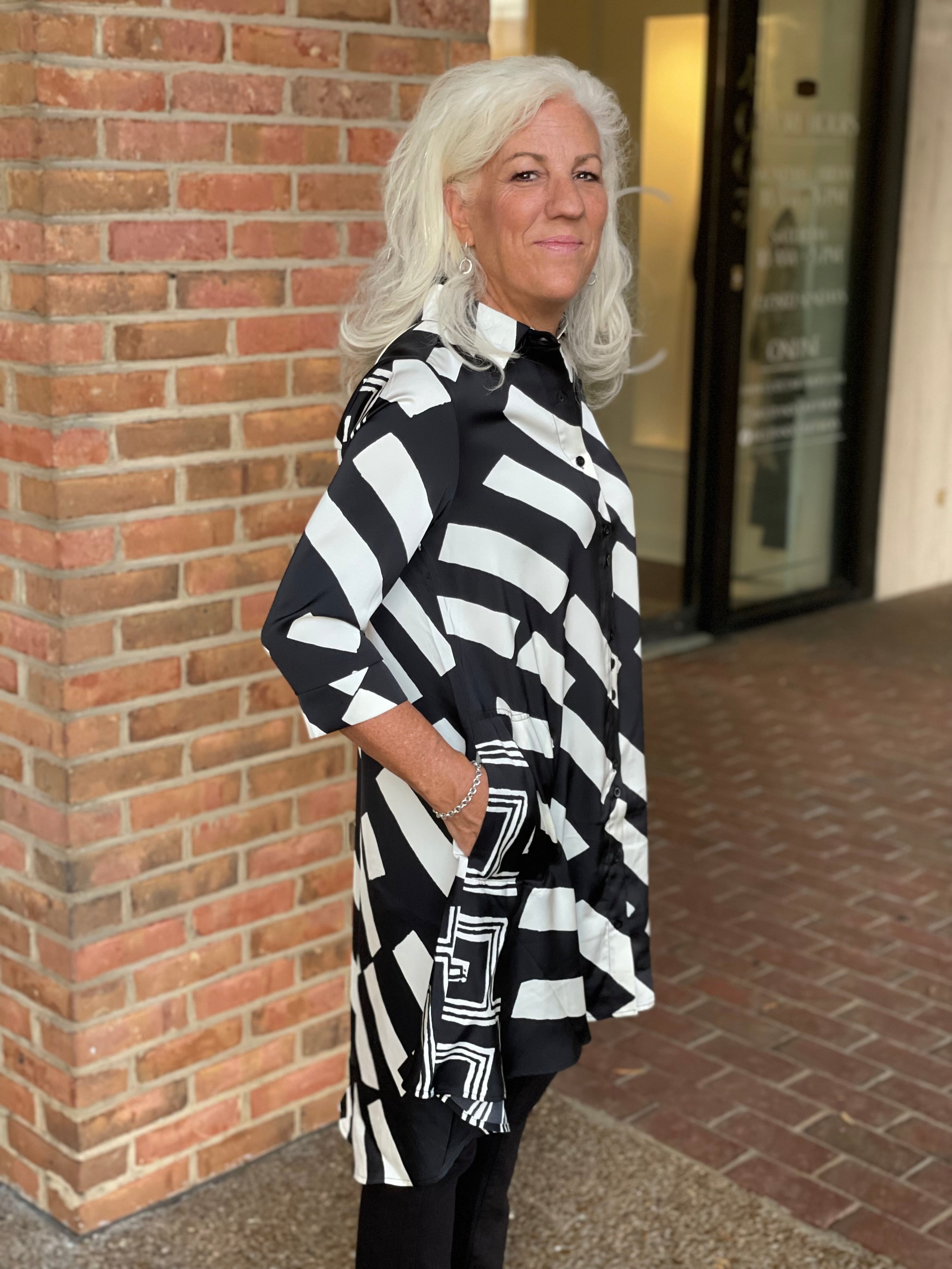 The coolest tunic you'll own, this boyfriend long swing shirt features pockets and a swingy silhouette that pairs perfectly with smaller leg denim, straight-leg pants, or leggings. True to size for easy, playful styling every time.