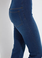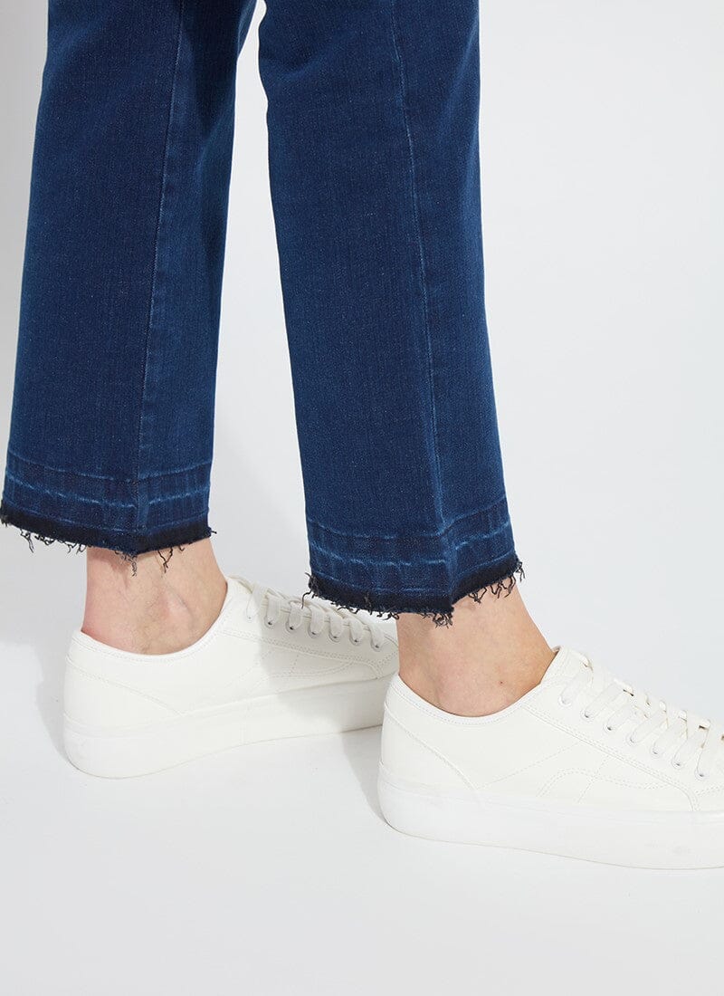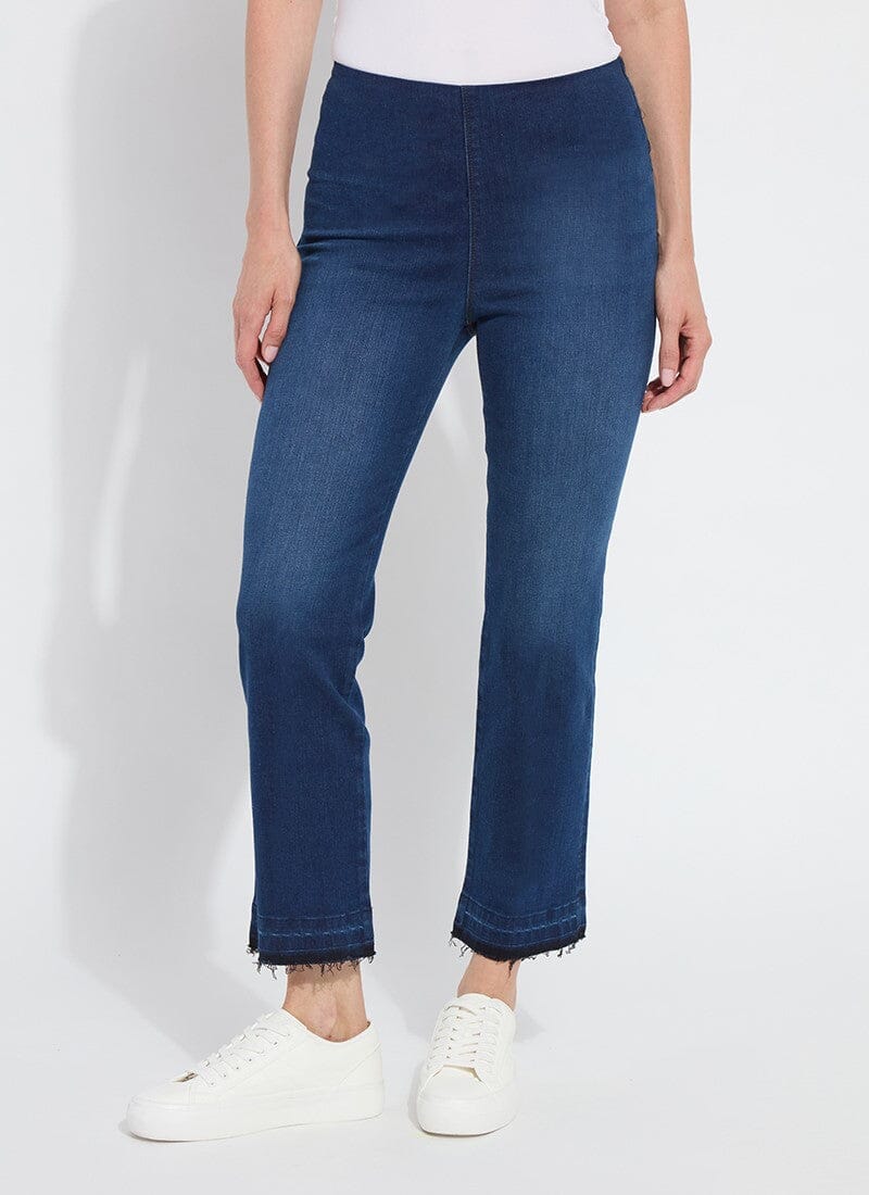 These premium bootcut jeans showcase two-toned tobacco topstitching, traditional 5-point back pockets with metal studs, and a natural fringe hem. Complete with our Lyssé exclusive patented concealed waistband for added comfort, two-way stretch 'Holding Power', and effortless pull-on styling.