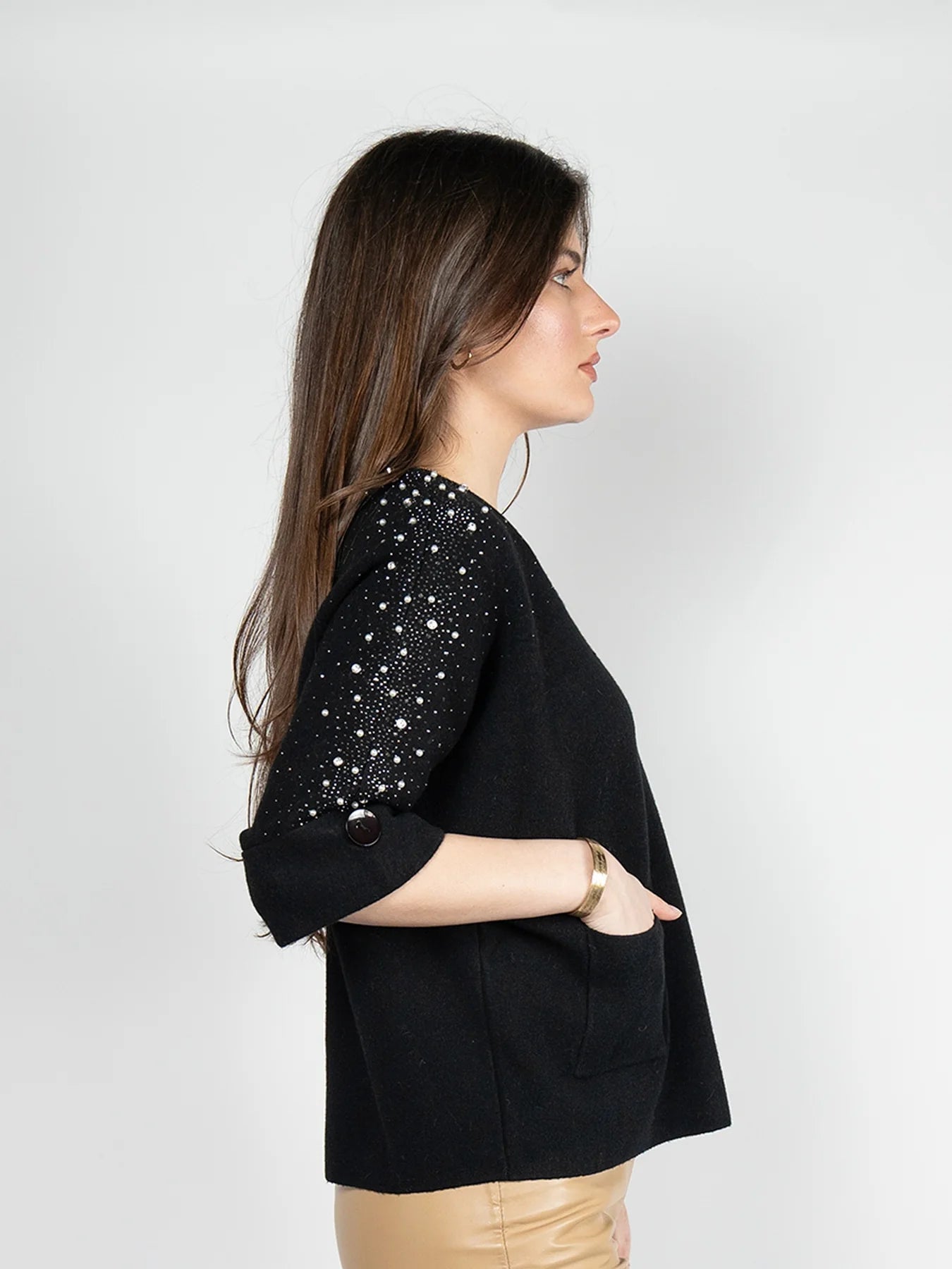 Nikky Apparels GN320 3/4 Sleeve Sweater with Rhinestones and Pearls