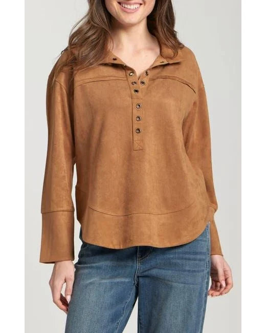 APNY K350 Faux Suede Henley with Grommet Placket