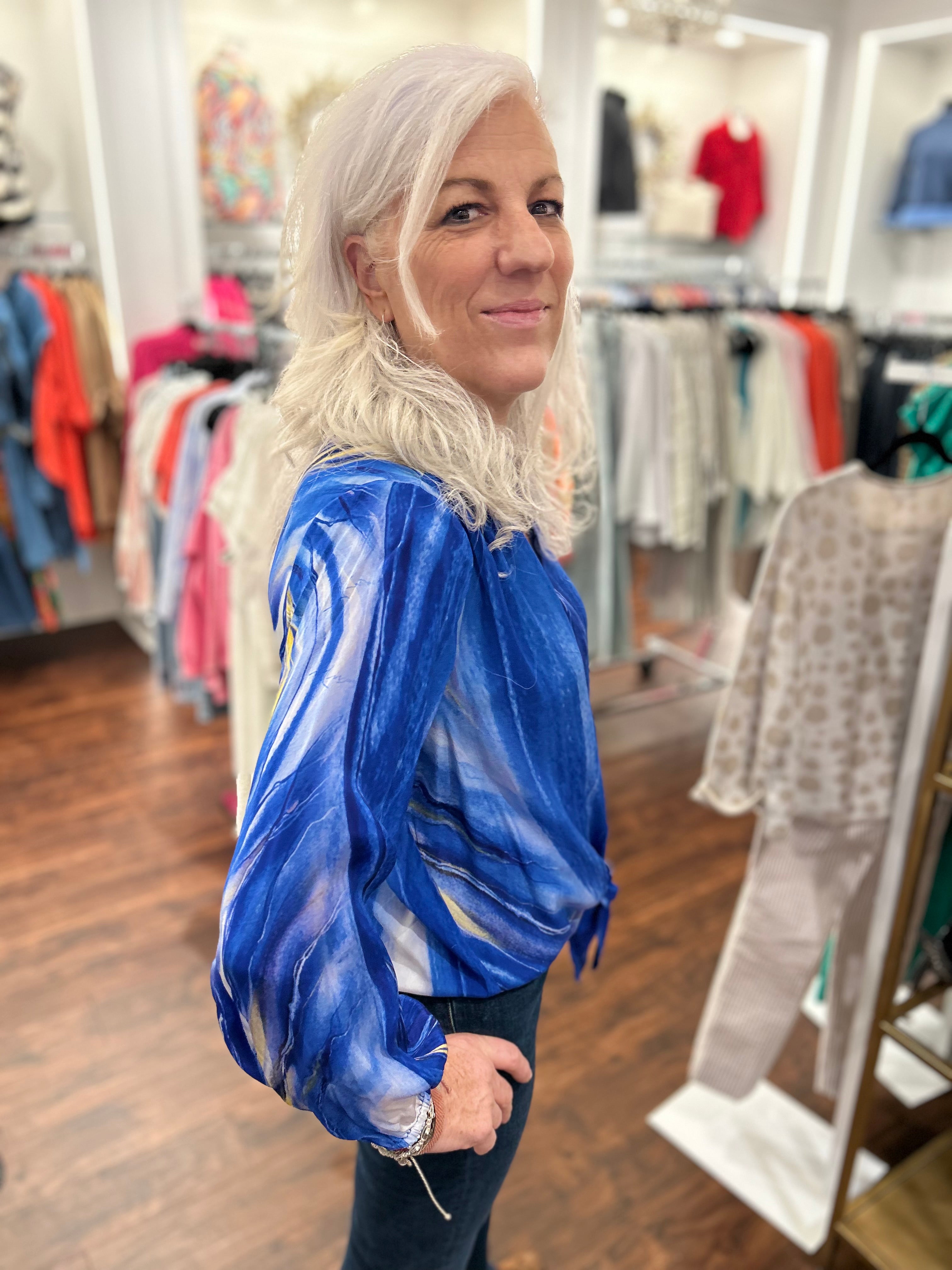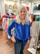 Step into spring with this playful blue V-neck top featuring a flattering tie-front design. Lightweight and breezy, it’s perfect for sunny days and casual outings. The cheerful shade of blue adds a fresh pop to any outfit, making it your new go-to for effortless style and comfort.