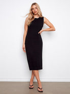 Charlie B C3259 Sleeveless Long Crew Neck Sweater Dress