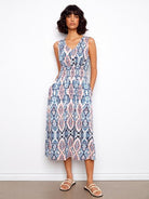 Charlie B C3261 Printed Viscose Dress w/ Smocking at Waist