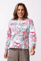 Escape by Habitat 13425 Peruvian Cotton Fiji Floral Hi-Lo Scoop Neck Tee
