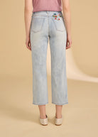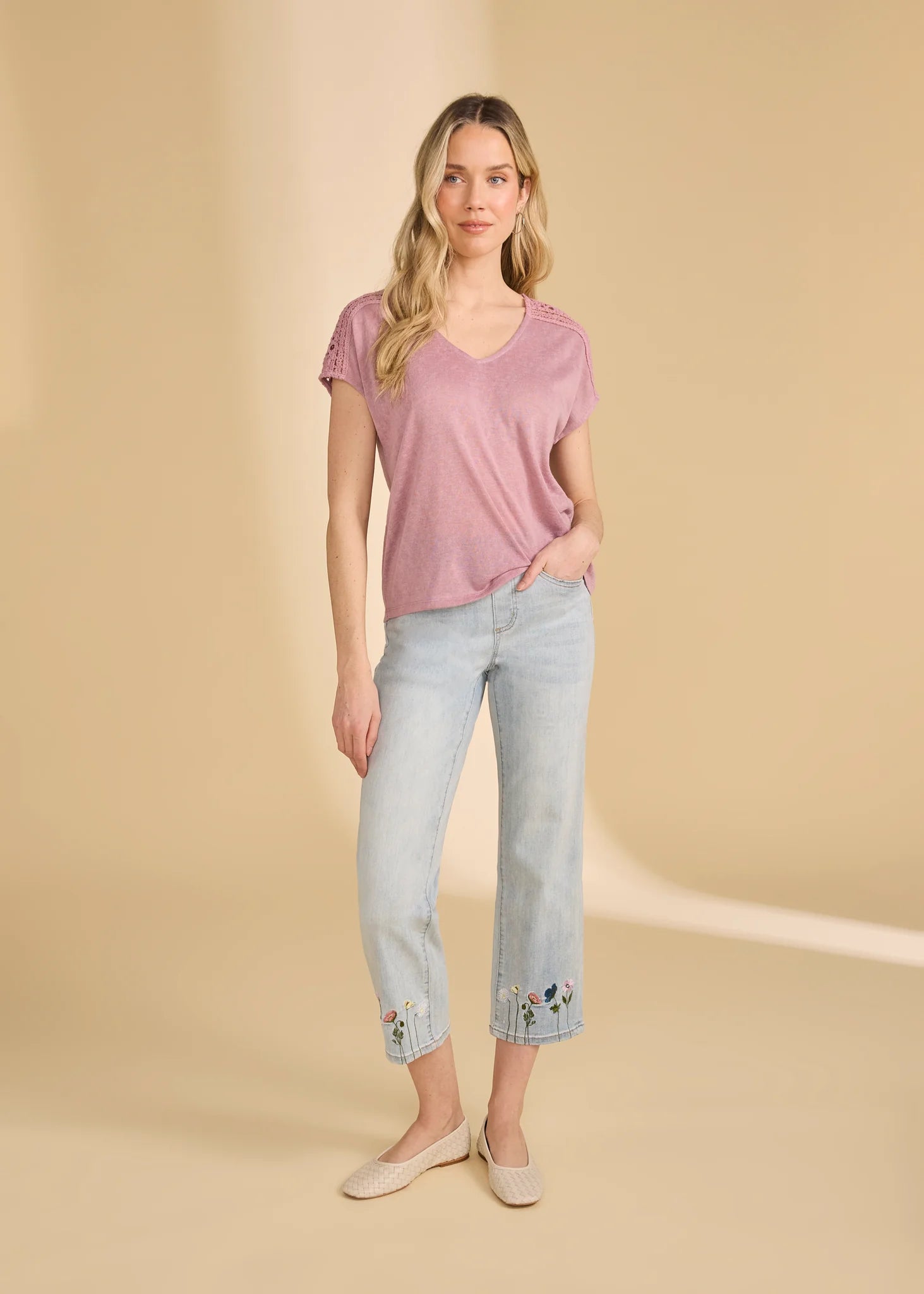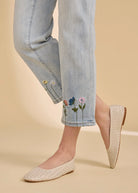 FDJ 2489669 Embroidered Floral Pull On Straight Crop Jean