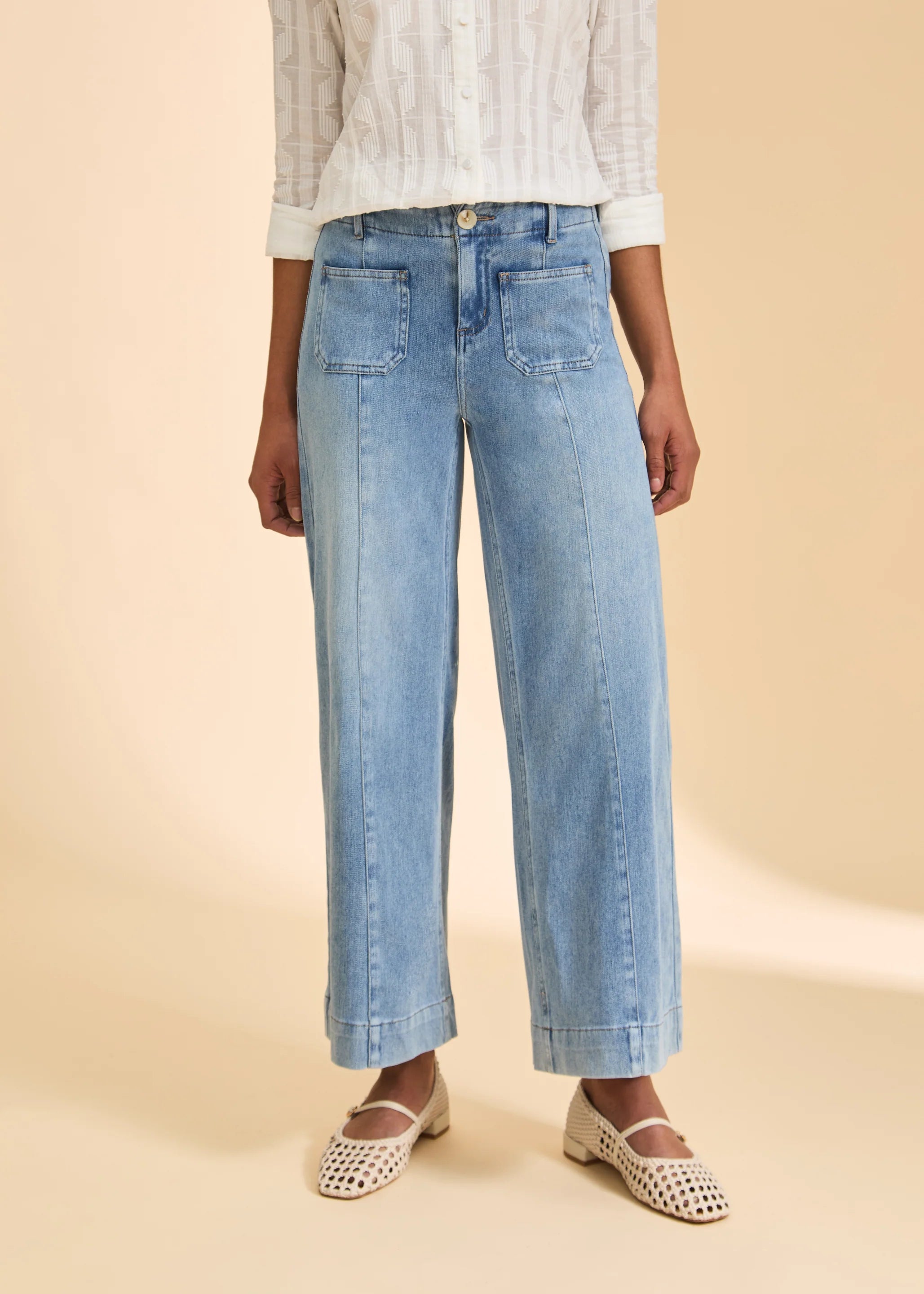 These mid-rise, wide-leg cropped pants offer an easy-going style. Made from a soft, stretchy fabric, they come with front patch and back welt pockets. The button closure gives them a classic feel, and the relaxed fit keeps you comfortable. Ideal for a casual yet classy appearance.