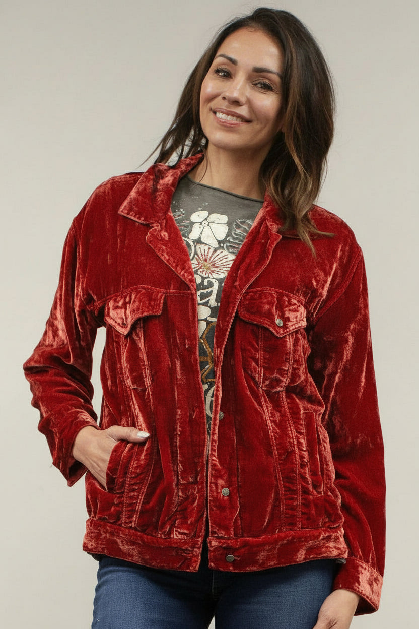 Introducing the Kyla Seo KSBH20 Rosie Jacket—where timeless denim vibes meet luxe velvet dreams! This playful take on a classic jean jacket features sumptuous 100% rayon silk velvet that feels as amazing as it looks. Perfect for elevating your everyday style with a touch of unexpected softness, it's the jacket that says "I'm cool, comfortable, and totally fabulous." Layer it over anything for instant personality and cozy-chic appeal.