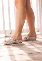 This leather sandal has a memory foam insole, leather lining and synthetic outsole. This slip on shoe is on a 1.5 inch heel. Shop catiana/bright multi paintbrush/ today.