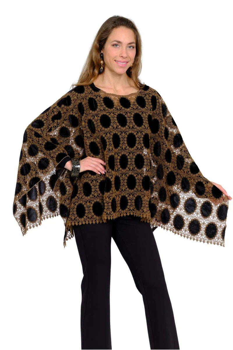 Slip into effortless elegance with the Lior Zetta Pullover Poncho—your new favorite layering obsession! This chic poncho drapes like a dream in a stunning taupe and black palette, complete with an intricate lace pattern and plush velvet dot details that add serious texture and visual interest. The easy pull-on style means zero fuss, maximum polish. Whether you're pairing it with leggings for a cozy vibe or dressing it up with tailored pants, this lightweight yet luxurious piece instantly transforms any outfit from basic to "wow." Modern, timeless, and undeniably comfortable—it's the versatile staple that makes getting dressed fun again.