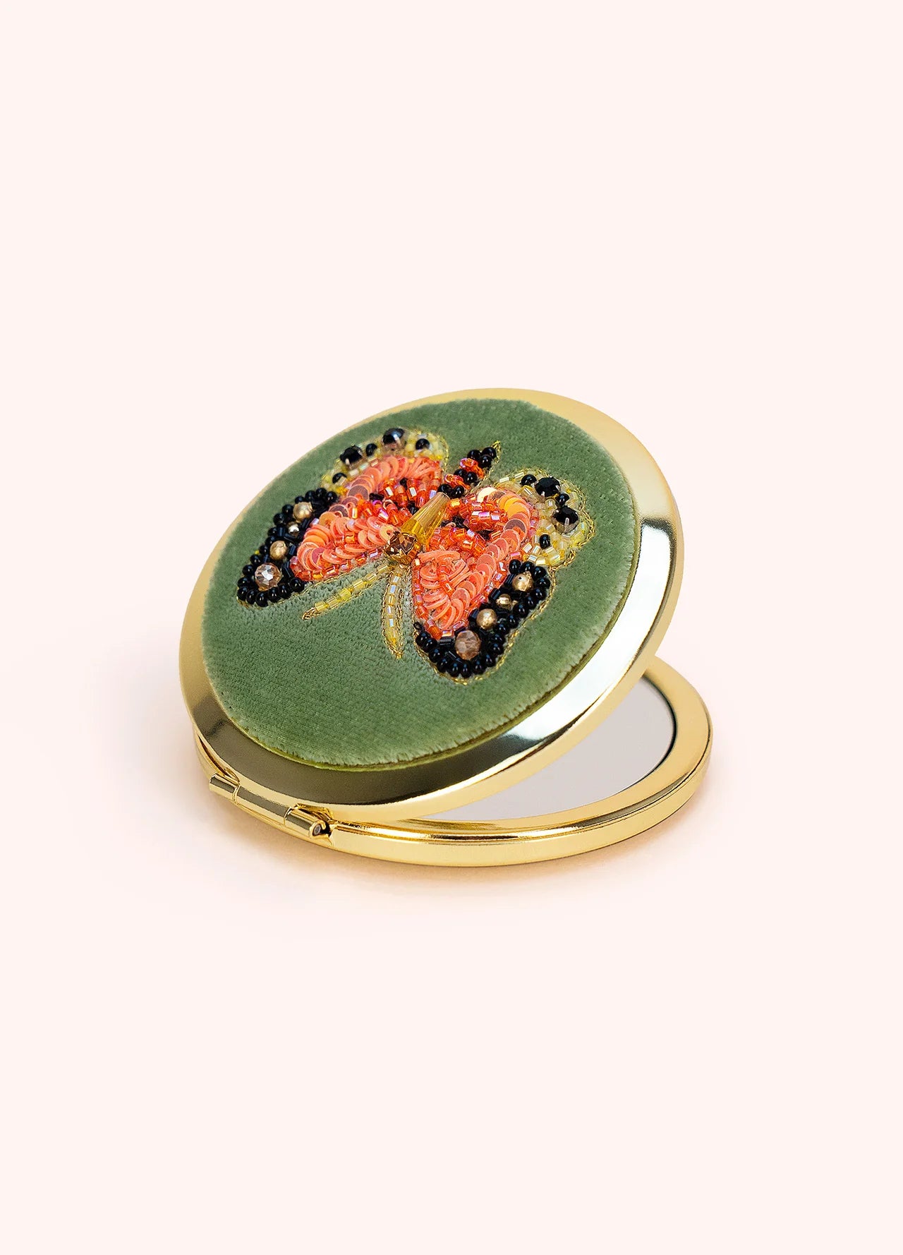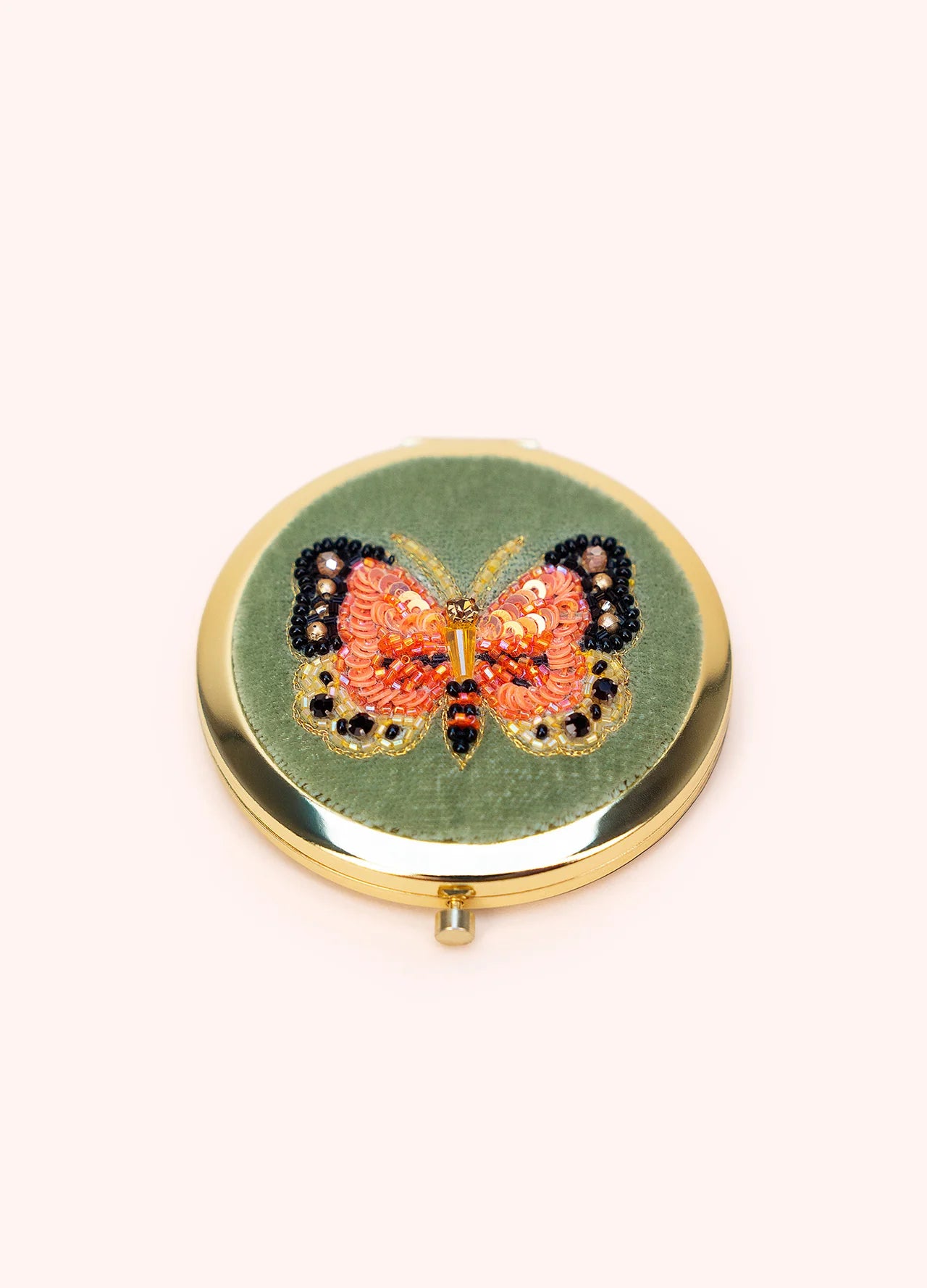 Looking for a gift for the fashionista in your life? Look no further! Transport yourself into your divine feminine energy with our luxurious embroidered compact mirror. Whether you’re a lover of butterflies or sunflowers, this beautifully embroidered mirror is the perfect vintage inspired addition to your everyday bag or hand-luggage!