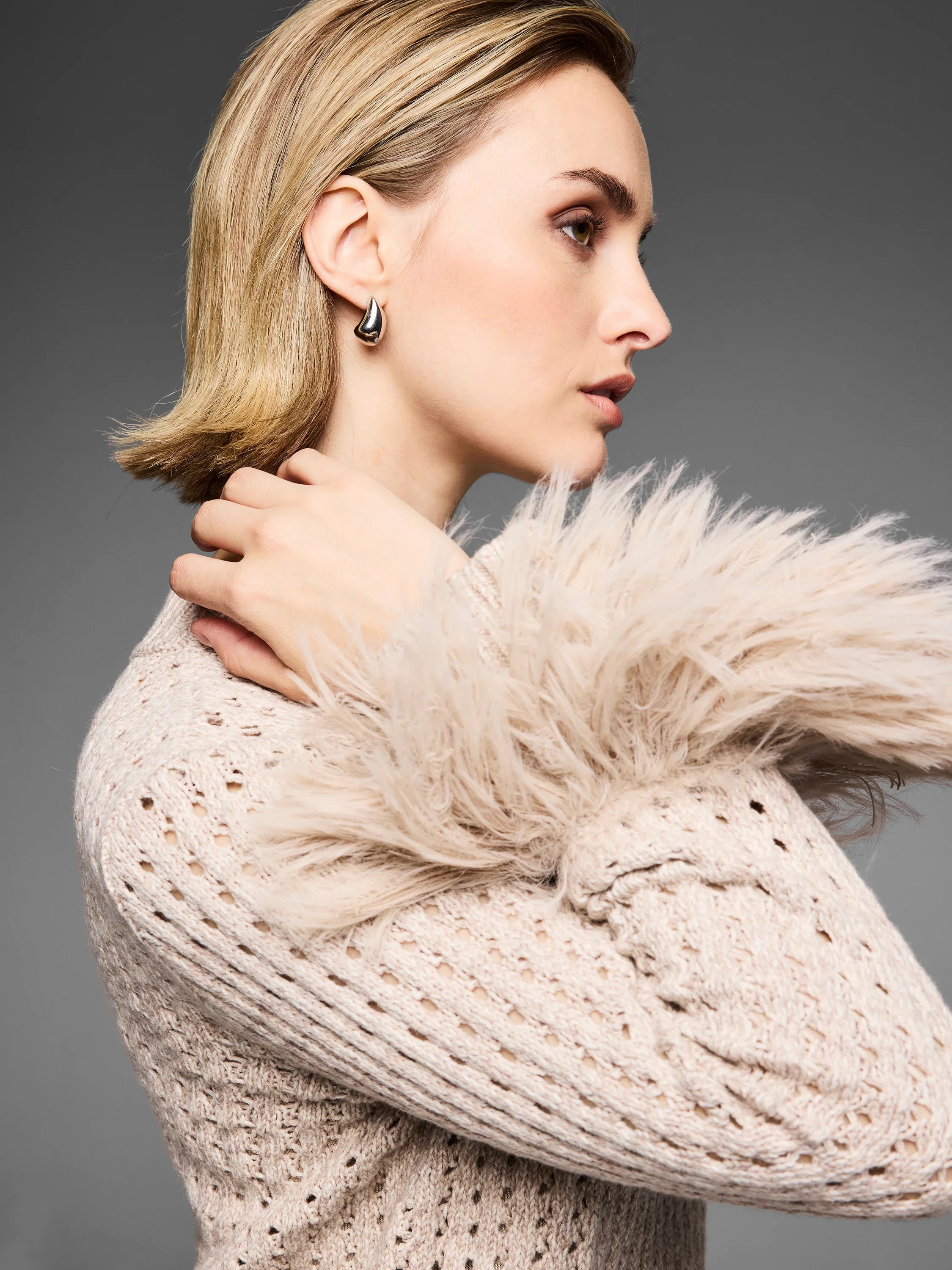 NIC+ZOE ELVF259131 Gold Label Party Cuff Pointelle Sweater